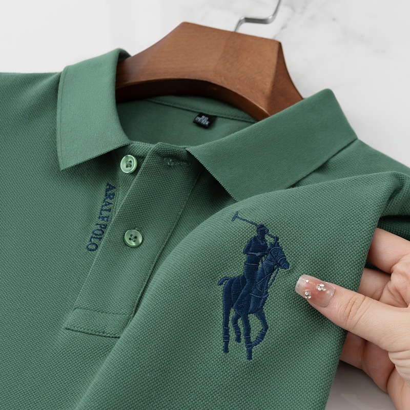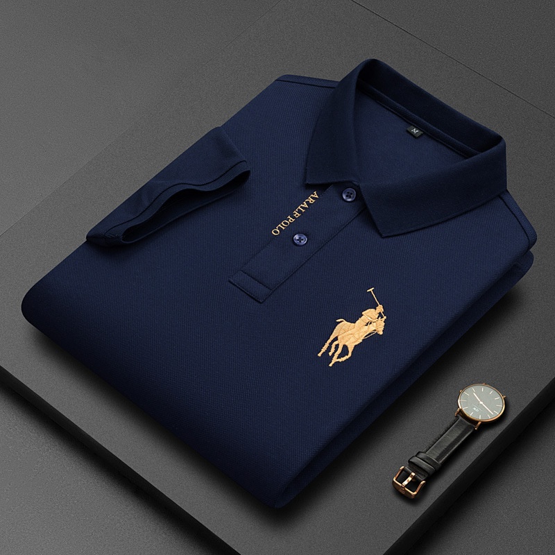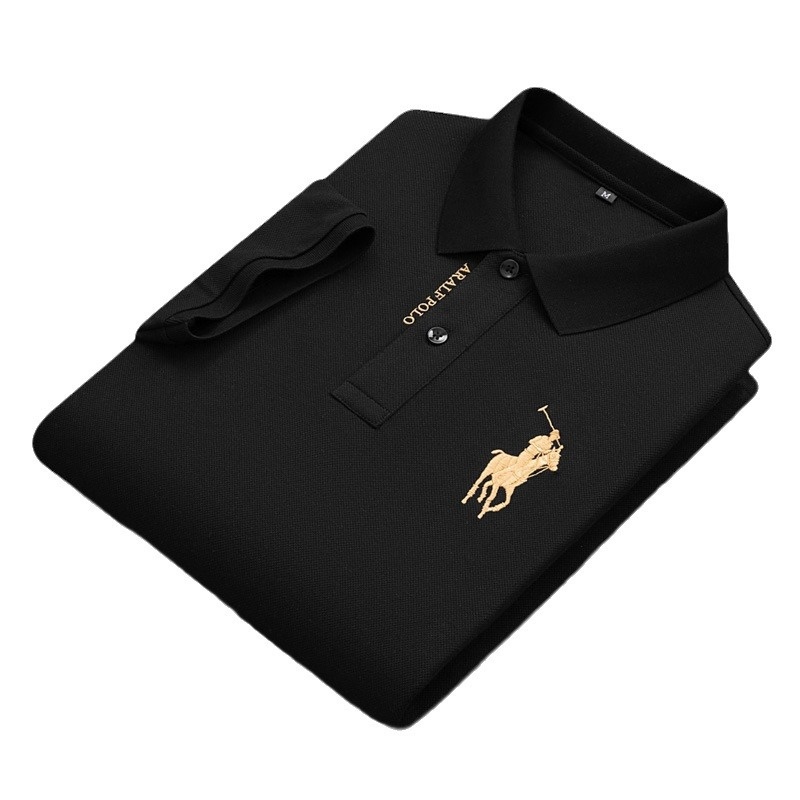 Paisonlong Fashion Pure Cotton Beaded Embroidery Men's POLOShirt Middle-aged Lapel Short-sleeved Men POLO