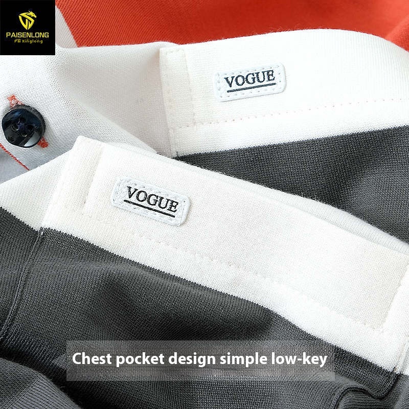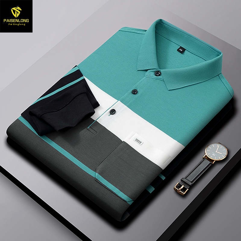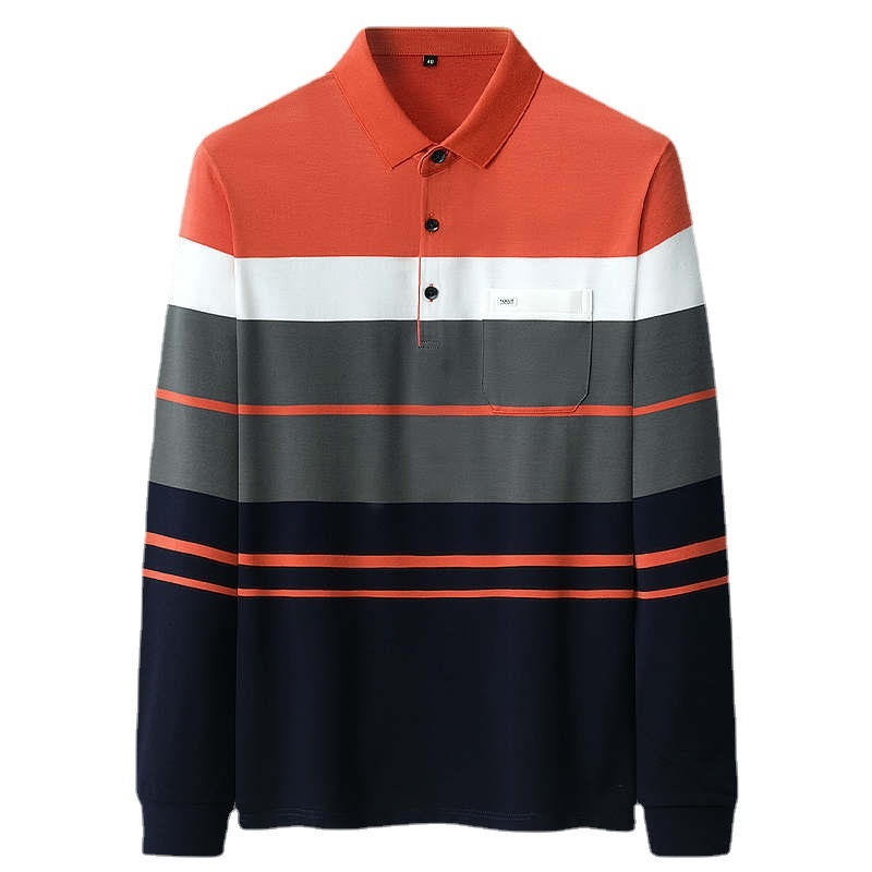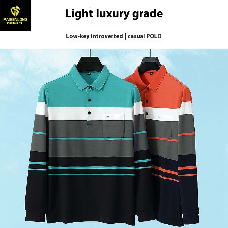 Paisonlong Men's Long-sleeved POLOShirt Business Casual Striped Middle-aged Men's Lapel T-shirt With Pockets