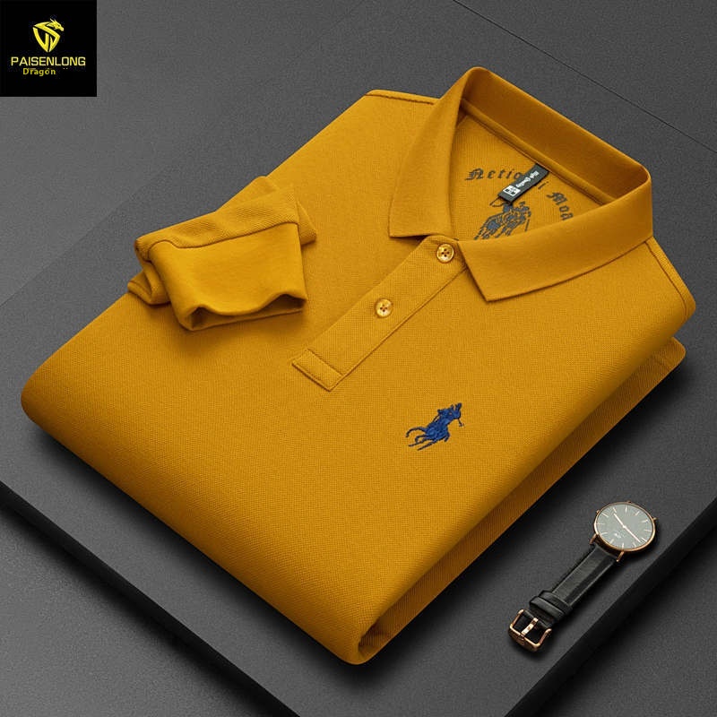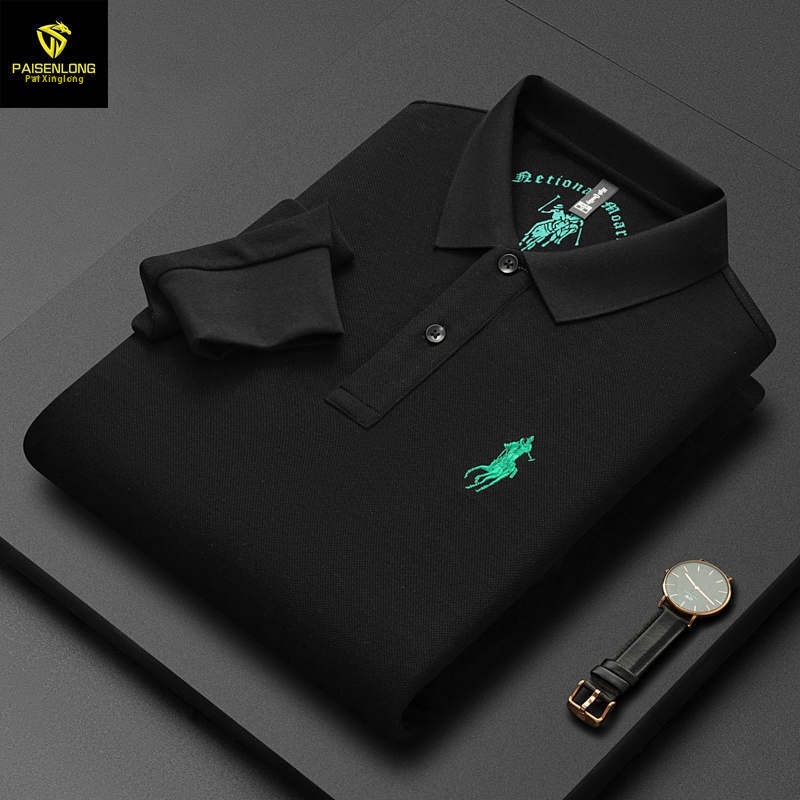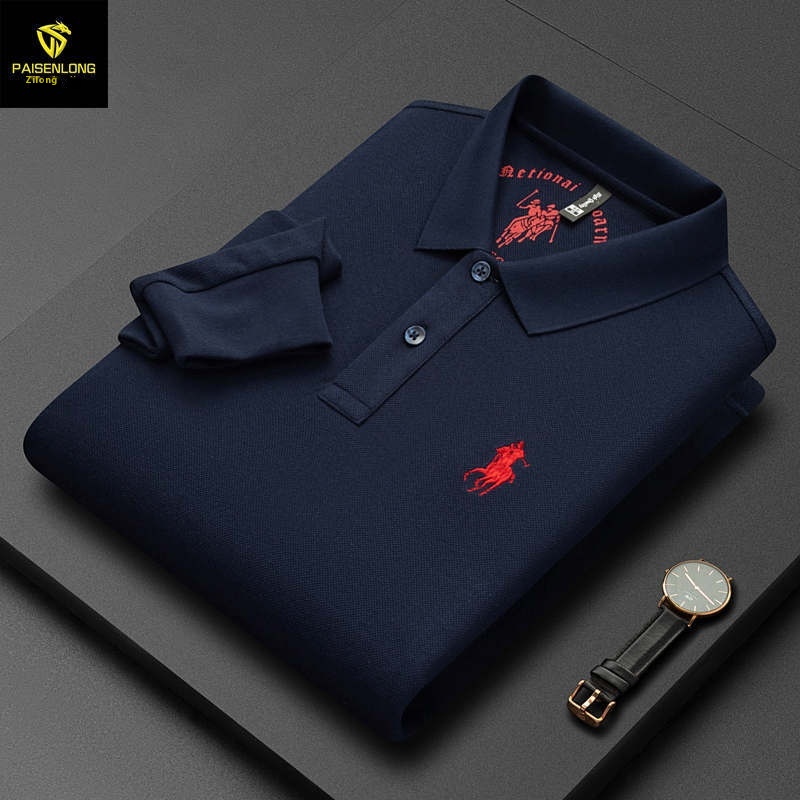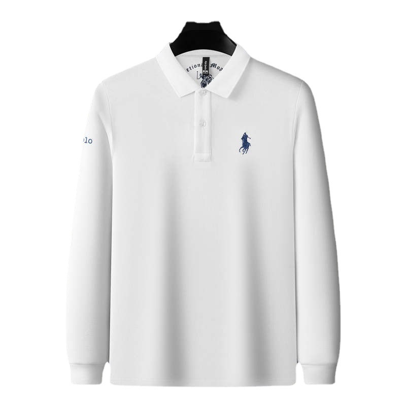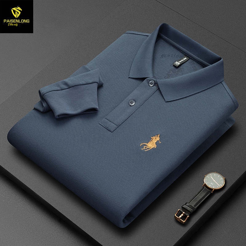 Paisonlong Autumn And Winter Men's Long-sleeved T-shirt Pure Cotton Lapel Embroidery Middle-aged Dad's Men's Tops