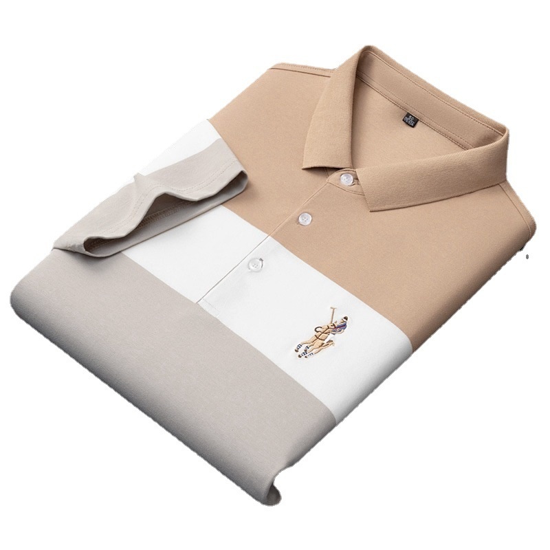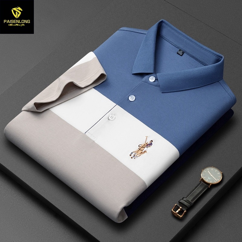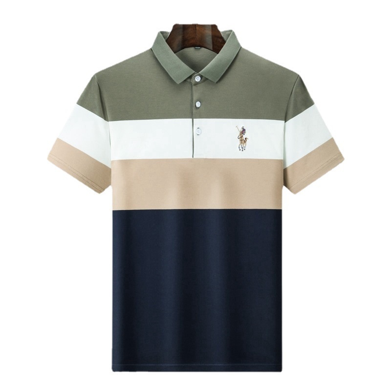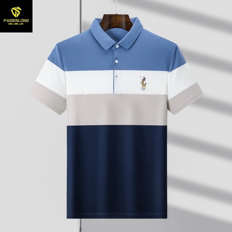 Paisonlong Men's Summer Men's Polo Top Striped Short-sleeved T-shirt Men's Business Casual Lapel T-shirt