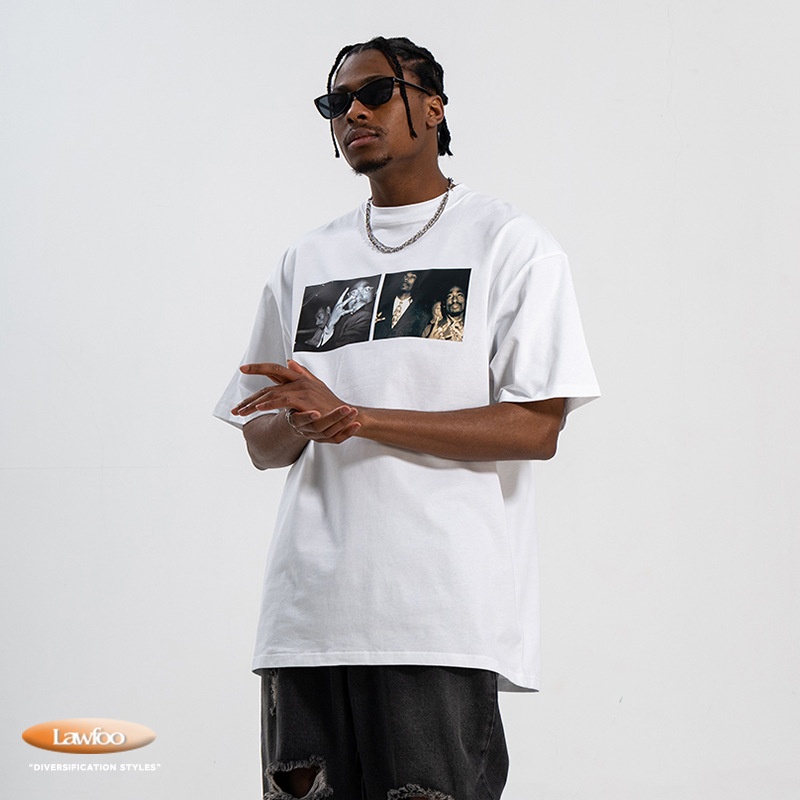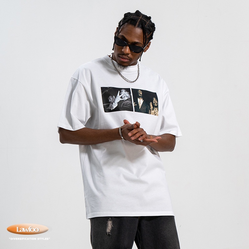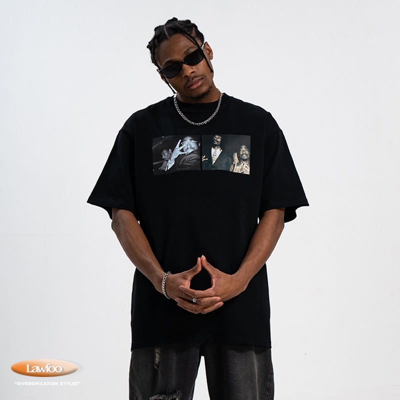 LAWFOONational Brand Bottoming Shirt Portrait Print Hip-hop Retro American Style Short-sleeved Street Men And Women Loose T-shirt