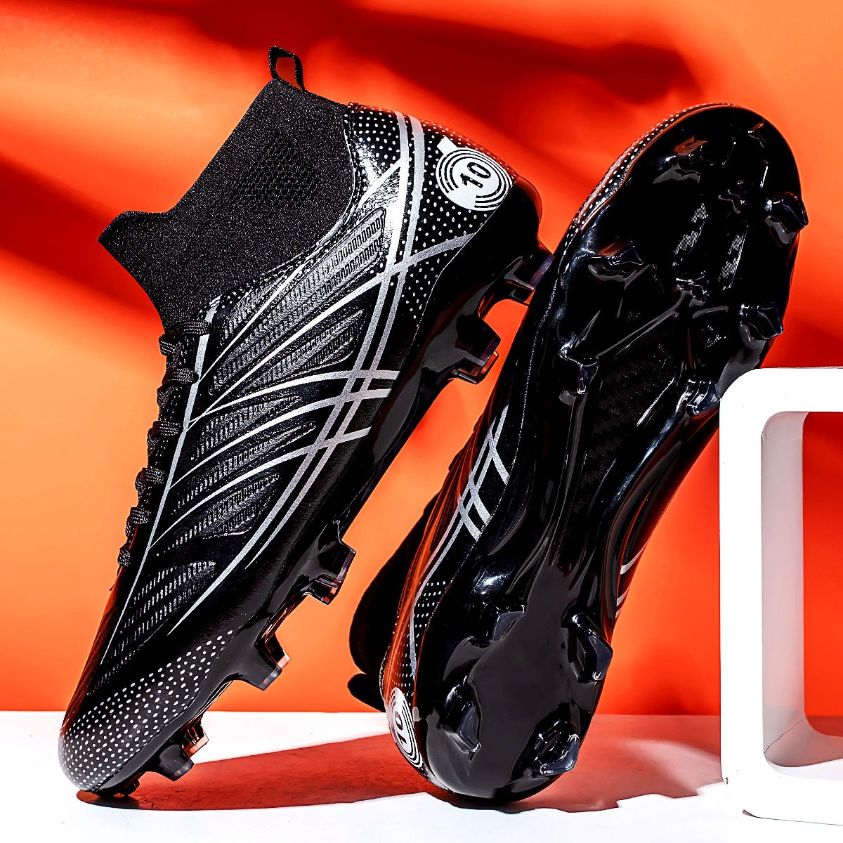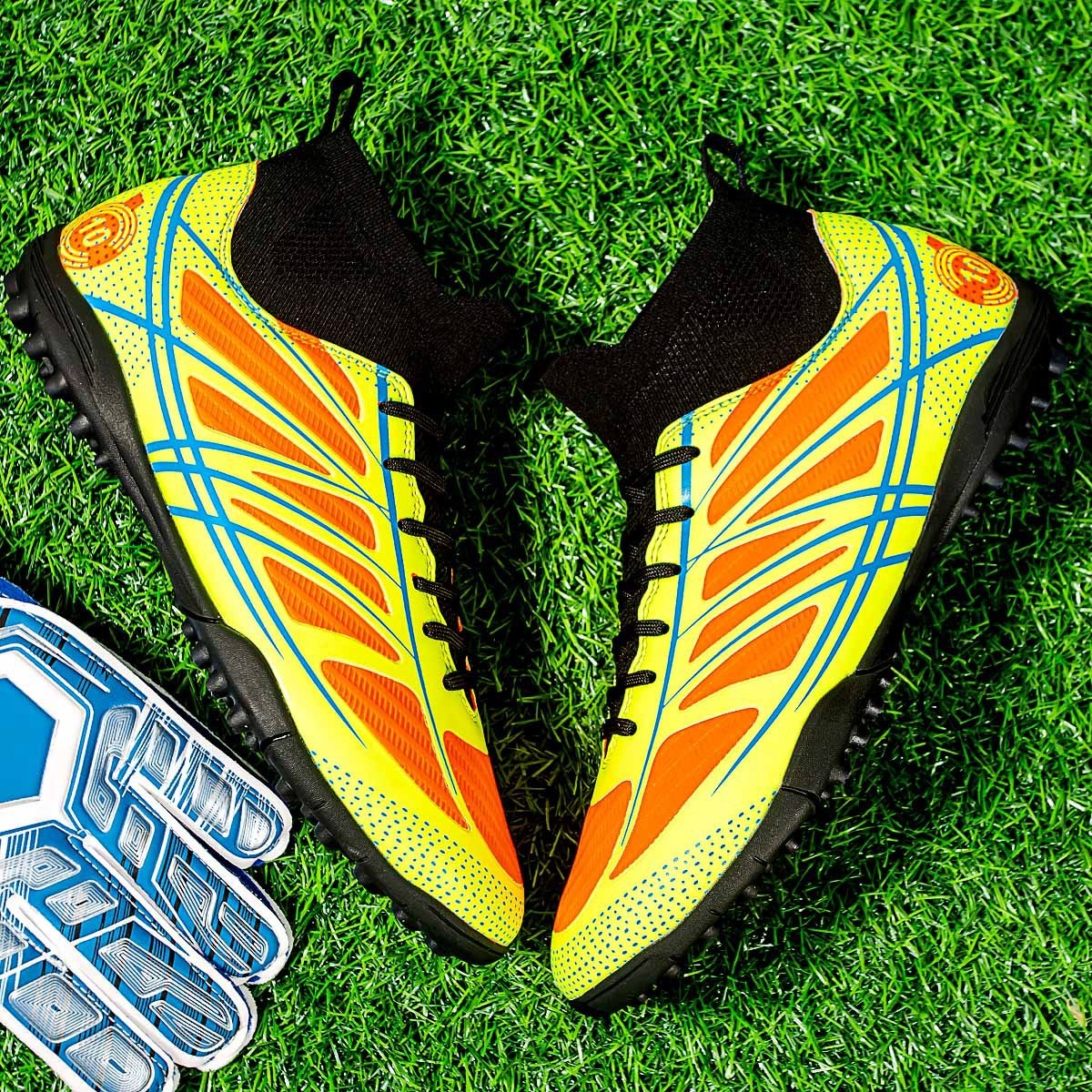 Children's Football Shoes High Top Spring Style Flying Woven Breathable Student Professional Training Shoes Football Shoes