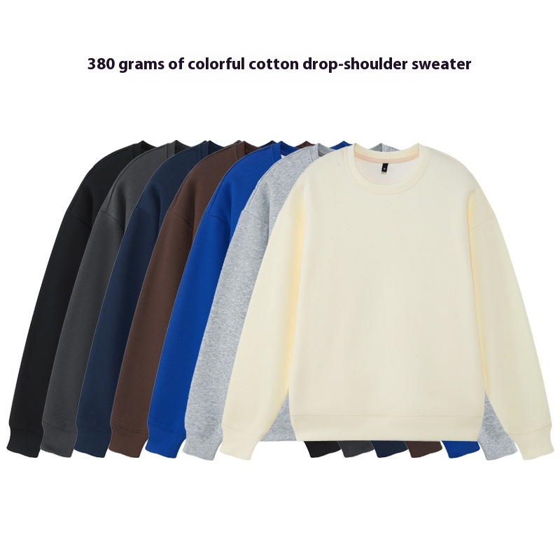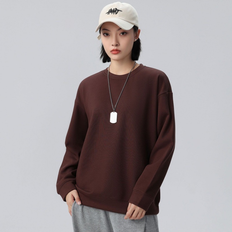 Fashion Brand Heavyweight Large Vertical Stripes Drop Shoulder Round Neck Pullover Sweatshirt Men's Coffee Color Loose Long Sleeve Jacket Couple Tops Women