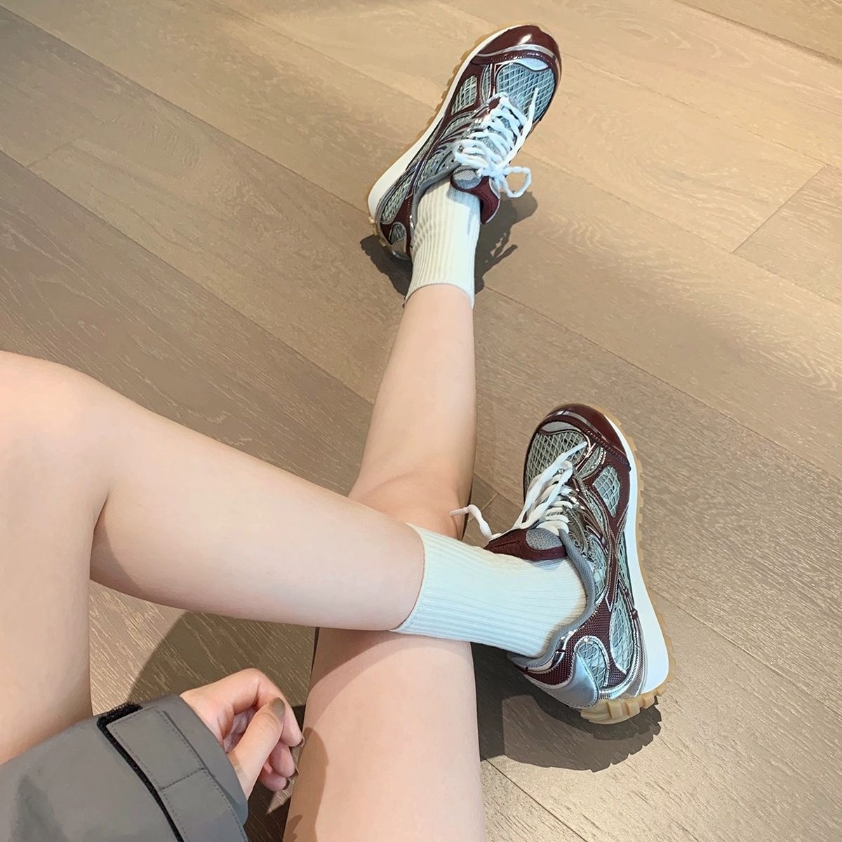 Garoya~Grape Mom's Same Heavy Series Contrast Color Sports Shoes Lace-up Thick Sole Height Increase Personality Dad Shoes For Women