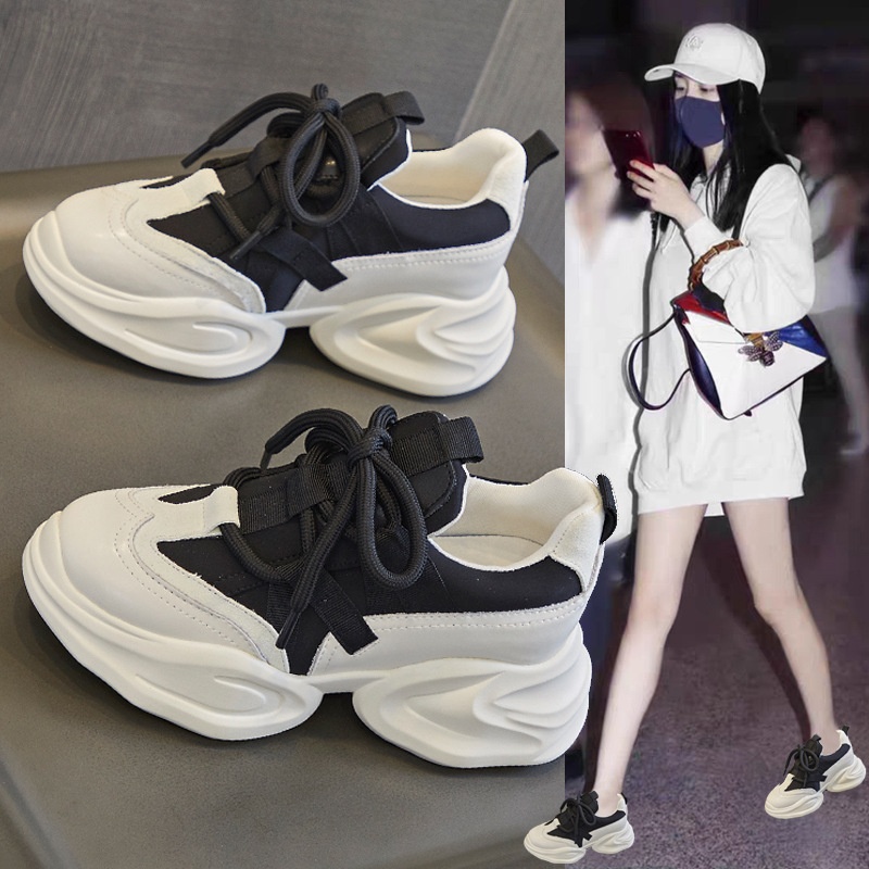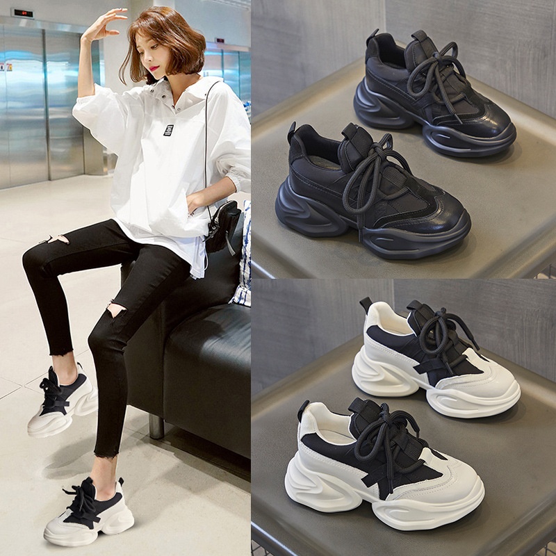 Height-enhancing Dad Shoes For Women Soft Leather Spring And Autumn Small Thick-soled Street-blasting Women's Shoes Platform Casual Sports Shoes