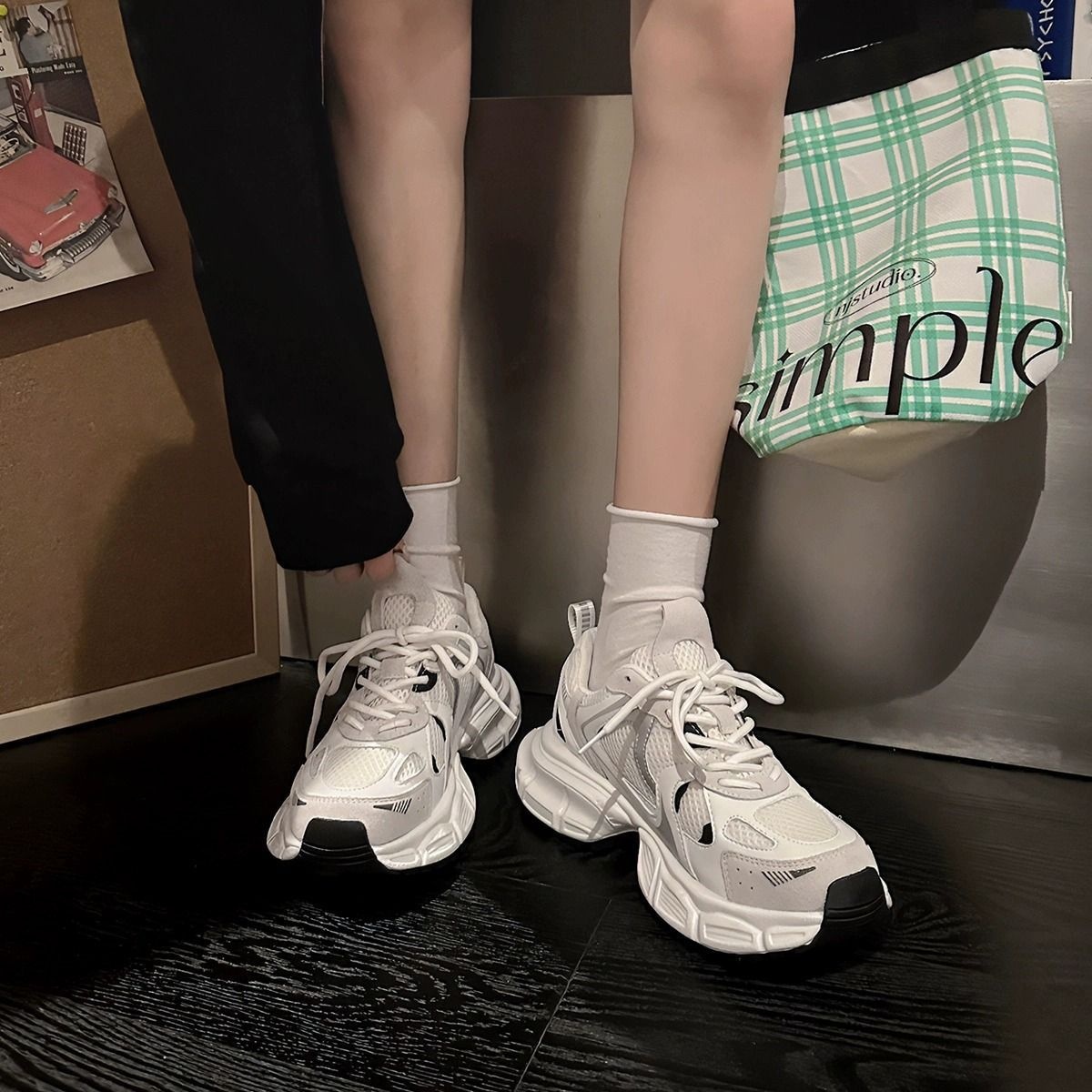 Garoya Street Style~Summer And Autumn Thick-soled Small Waist Mesh Breathable Casual Daddy Shoes