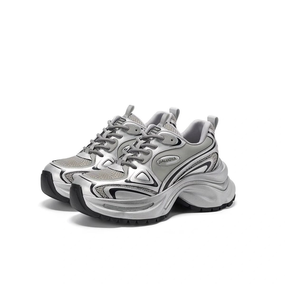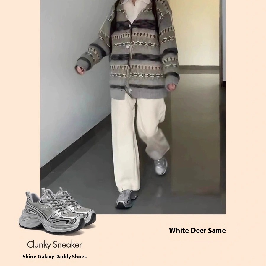 Garoya Internet Celebrity Silver Dad Shoes For Women Spring And Autumn Height-enhancing Thick-soled Versatile Casual Sports Shoes