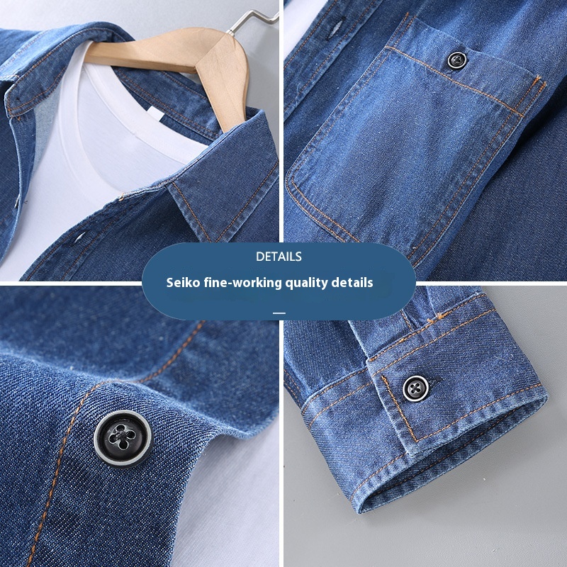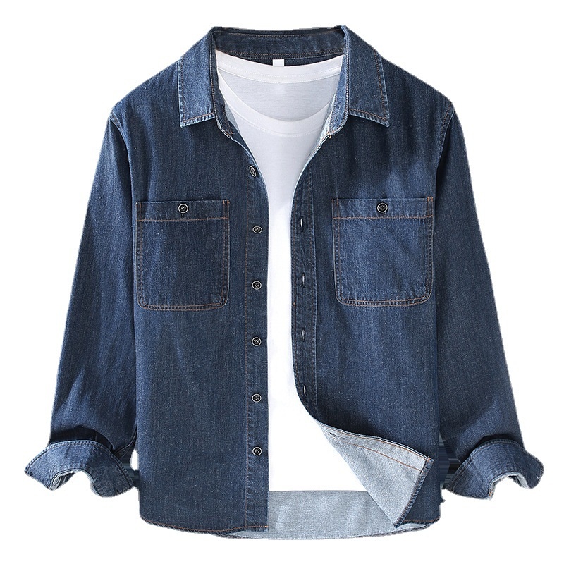 86010 Denim Shirt Men's Long Sleeve Spring And Autumn Style Hong Kong Style Japanese Retro Work Shirt Casual Jacket Men