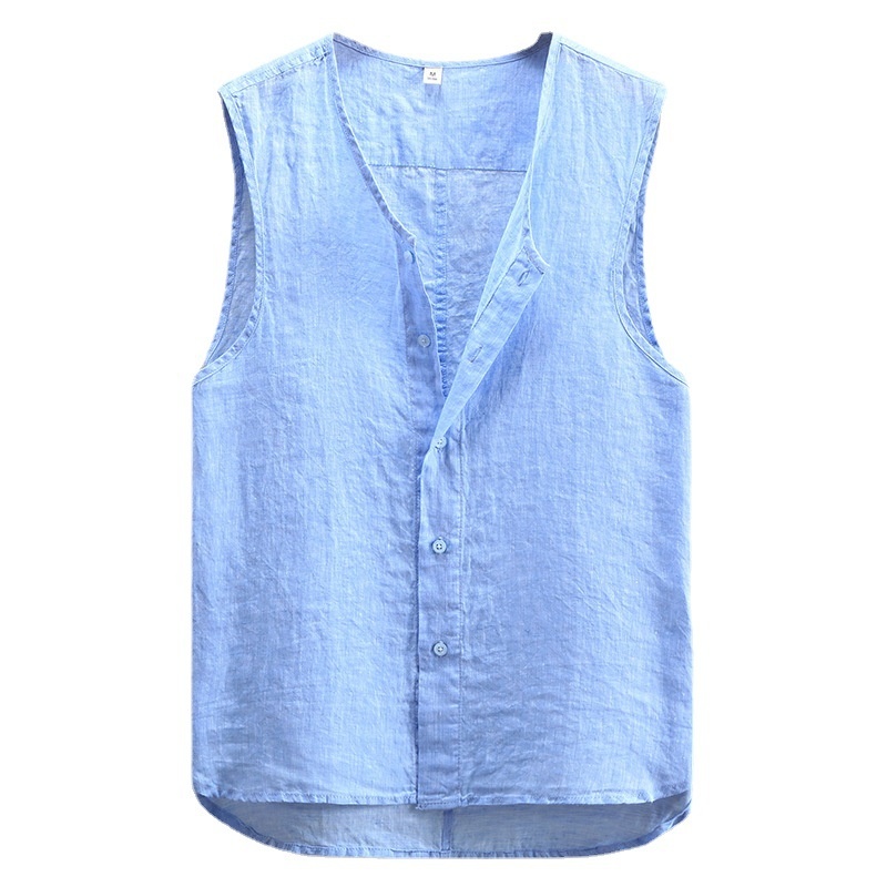 Summer Solid Color Linen Vest Men's Youth Sleeveless Retro Washed Linen Breathable Thin Button921