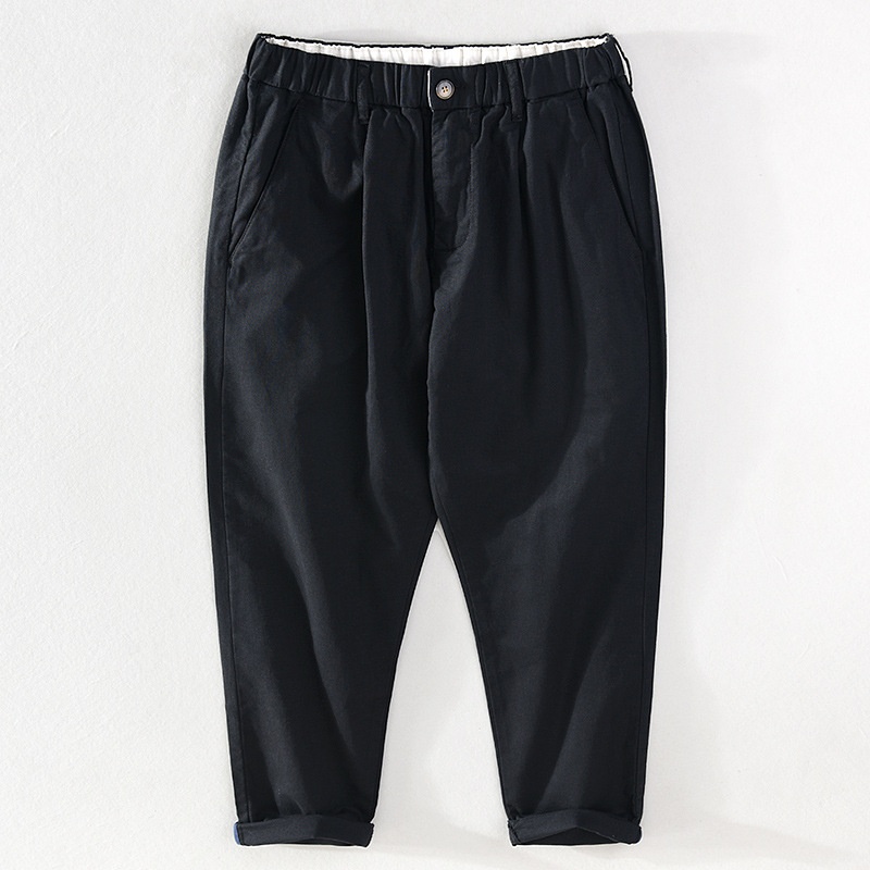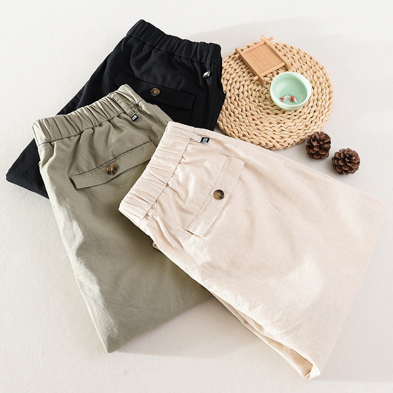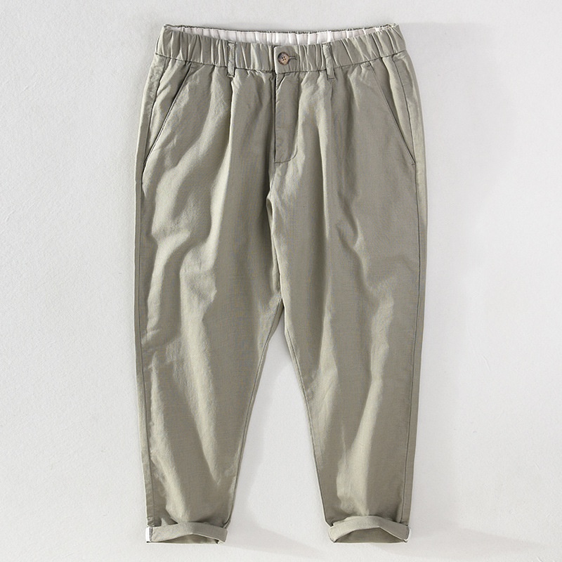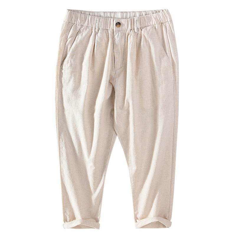 Harem Pants Men's Summer Linen Nine-point Pants Elastic Waist Linen Loose Casual Cotton Linen Breathable Small Feet Pants H003