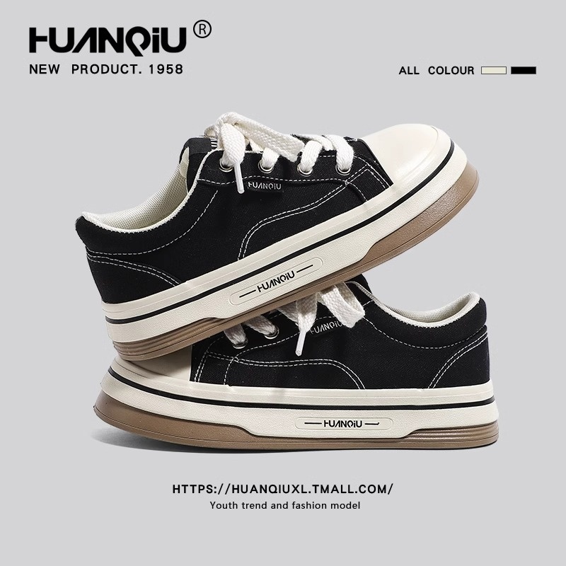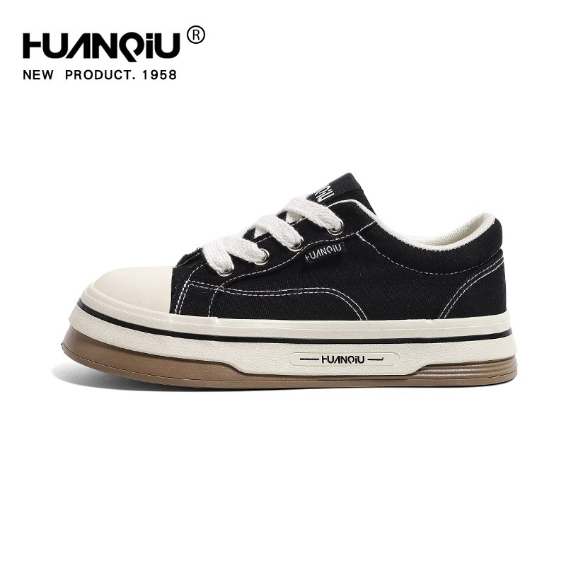 Global Thick-soled Black Canvas Shoes For Women Spring Fashion Super Hot All-match Student Casual Sports Shoes