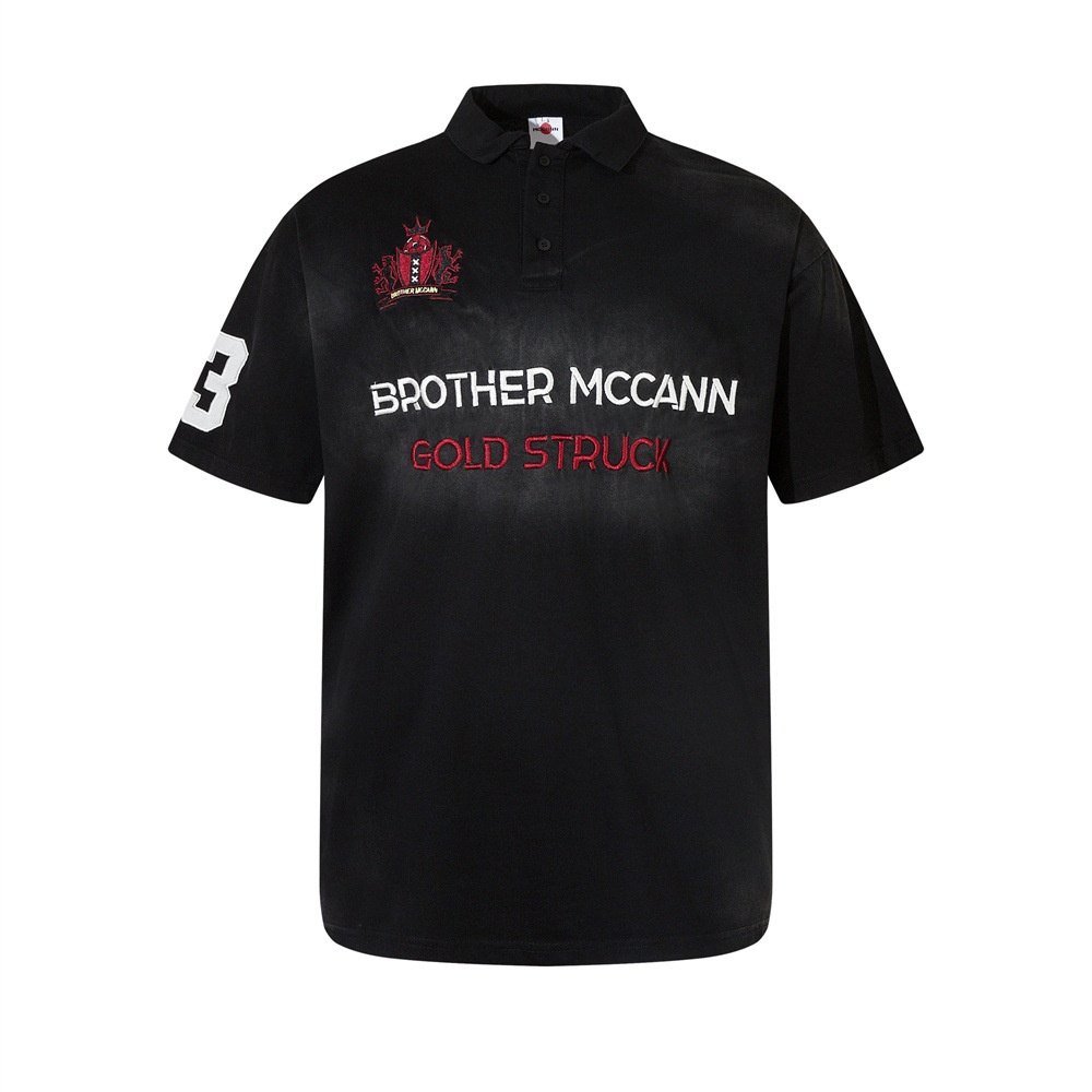Embroidered Letter Short-sleeved Polo Shirt Men's Summer Spray-painted Loose Heavy Double Yarn280g Sports Lapel T-shirt