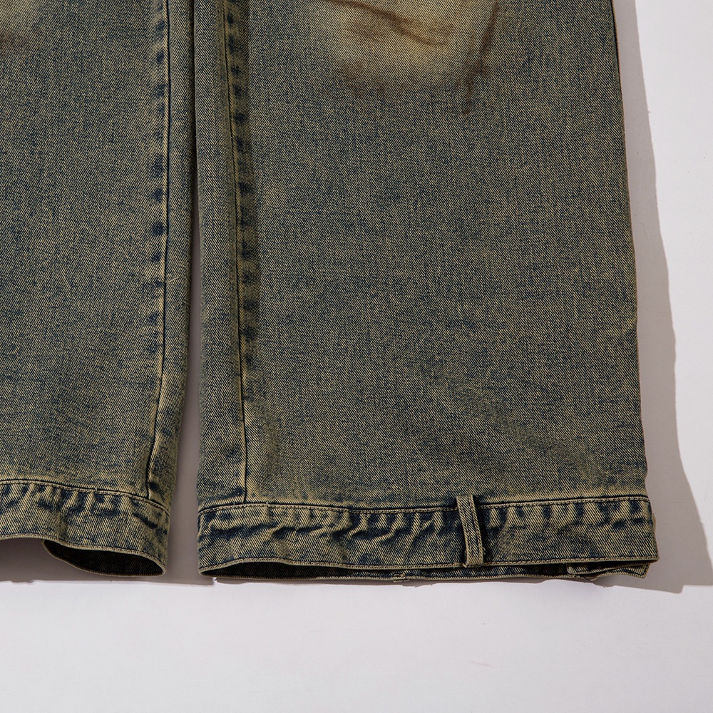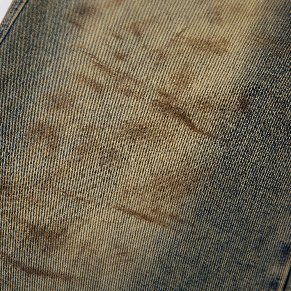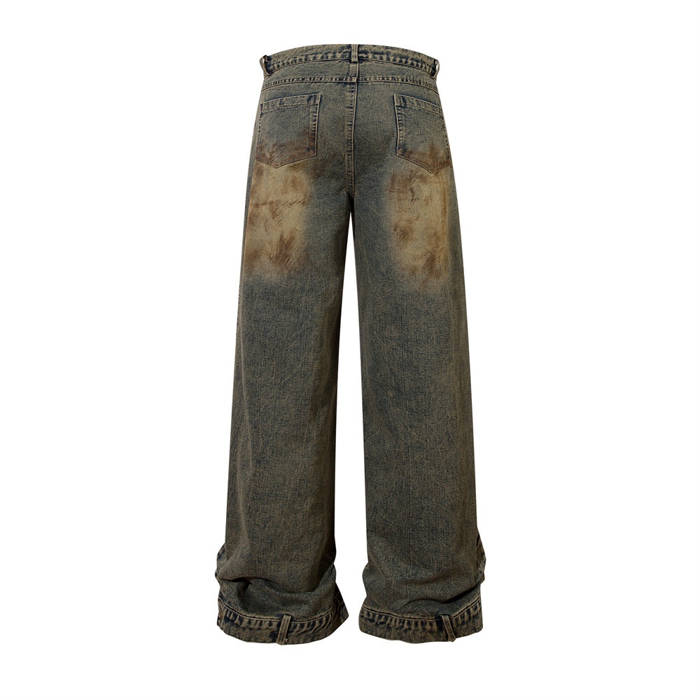 Mud-dyed Distressed And Dirty Denim Straight-leg Trousers For Men Vibey Punk Wasteland Style Washed Loose Wide-leg Trousers