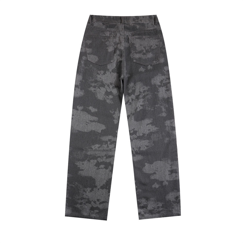 Camouflage Denim Trousers Men's High Street European And American Style Outdoor Sports Casual Camouflage Pants Loose Straight Pants