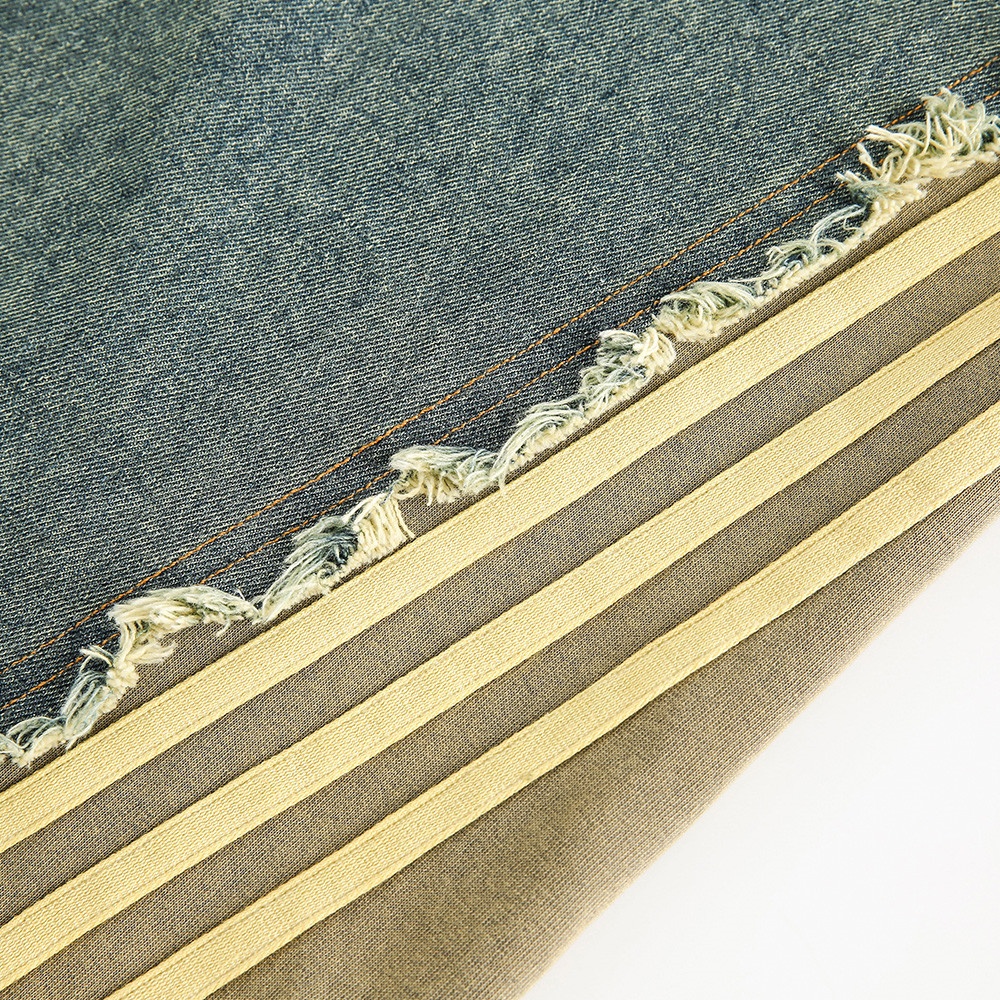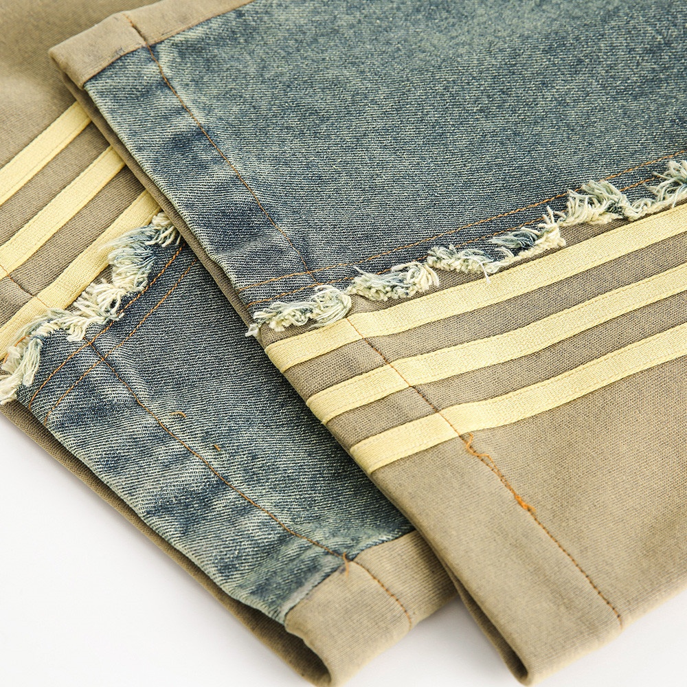 Colorblocked Raw Edge Cat Whisker Denim Trousers For Men High Street Design Niche Washed Distressed Wide Leg Straight Trousers