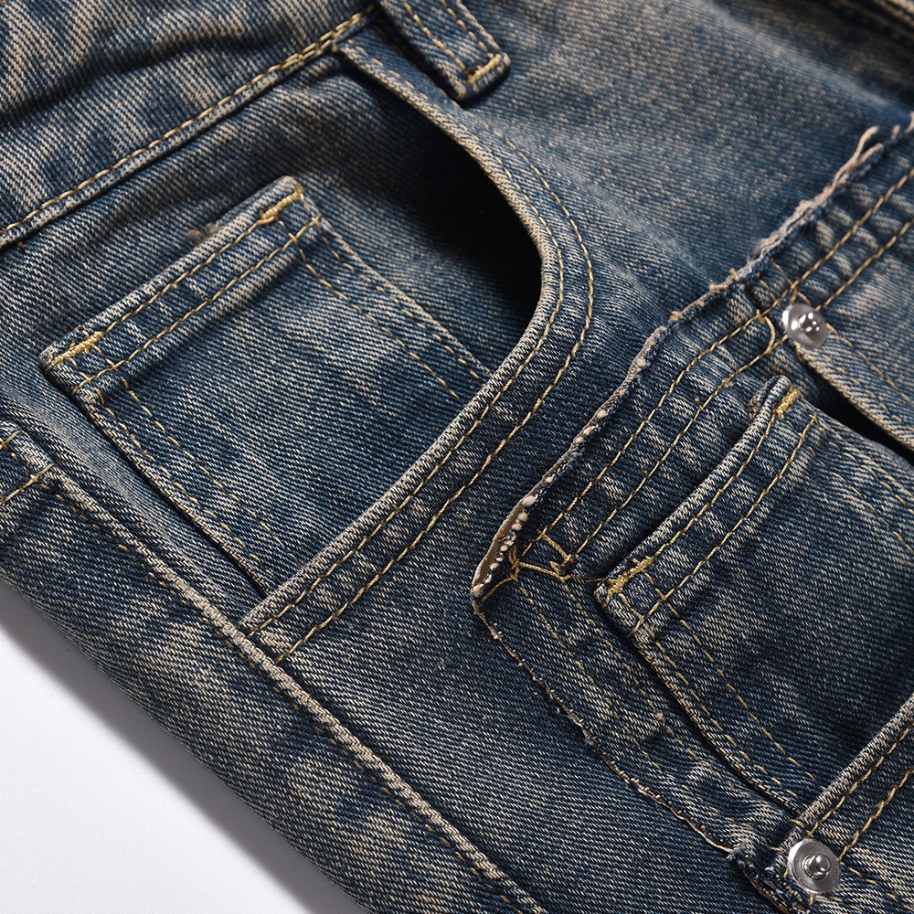 Washed And Distressed Denim Straight Trousers,Raw Edge Stitching,Fake Two-piece Design,Personality,High Street,Men's Wide-leg Trousers