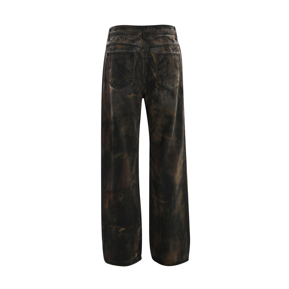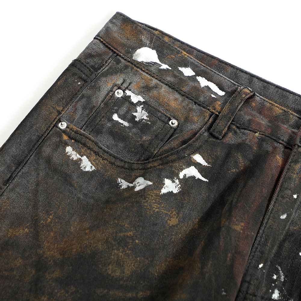 Heavy Paint Old Dirty Jeans Men's Punk Wasteland Styley Design Niche Casual Straight Trousers