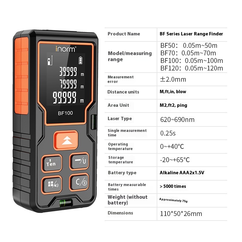 Inorm Handheld Laser Distance Meter High Precision Electronic Ruler Infrared Measuringtrument Measuring Room Ruler