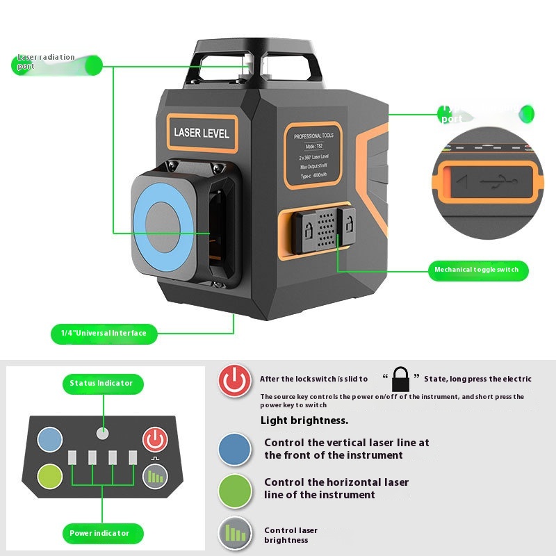 Inorm Green Laser Level360 Degree8-line High-precision Wall Mounter Outdoor Strong Light Small Projection Line Meter