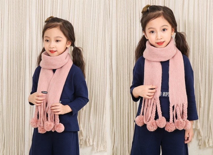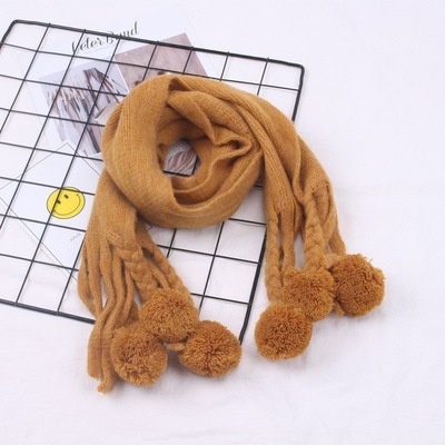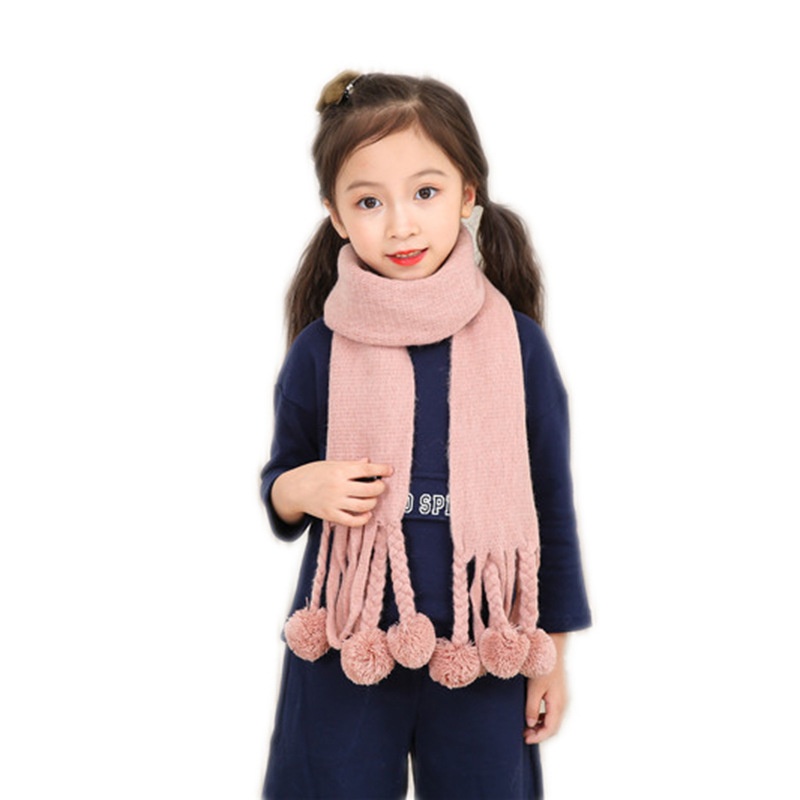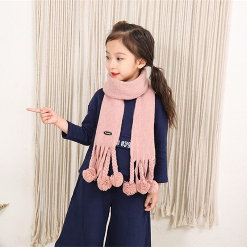 Children's Twist Hanging Ball Long Scarf Autumn And Winter Korean Style Knitted Wool Solid Color Warm Scarf For Boys And Girls Baby