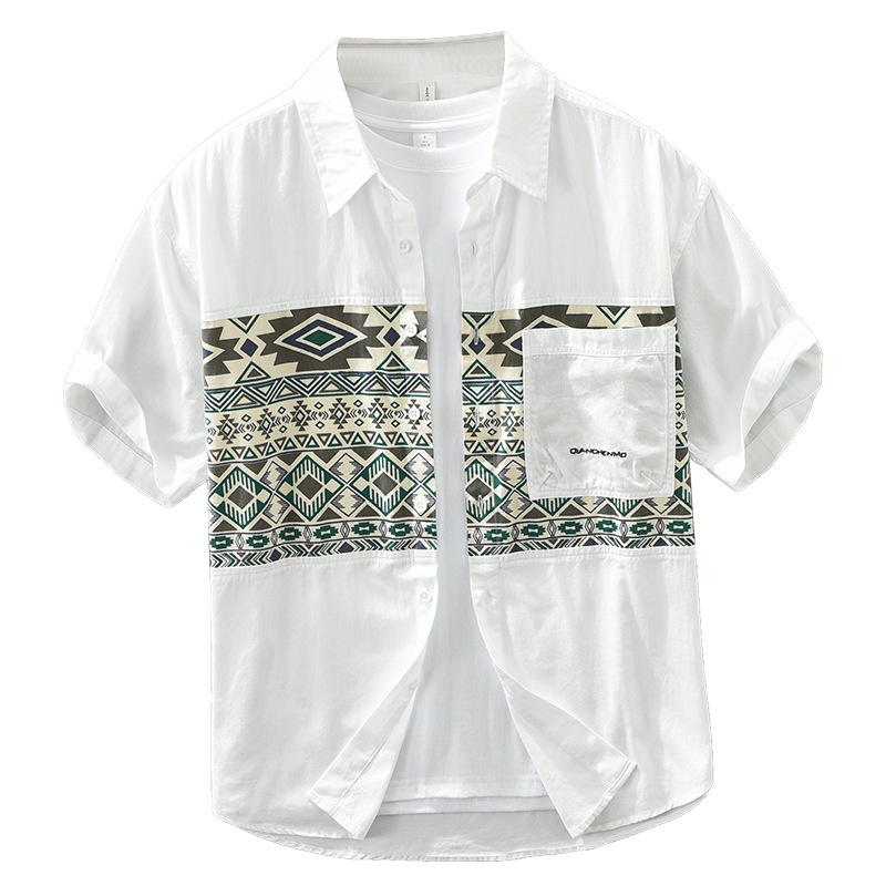 8025 Japanese Style Fresh Print Short-sleeved Shirt For Men,Fashionable And Versatile,Casual And Artistic Loose Tops,One Piece For Dery