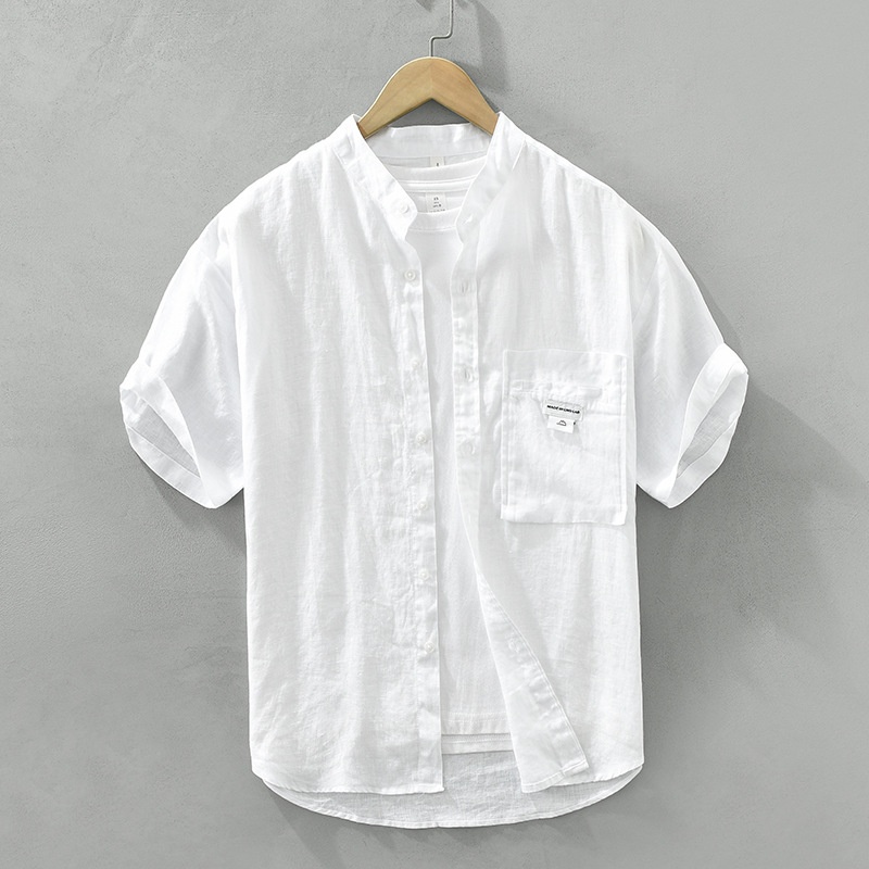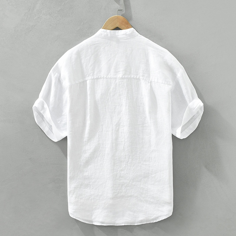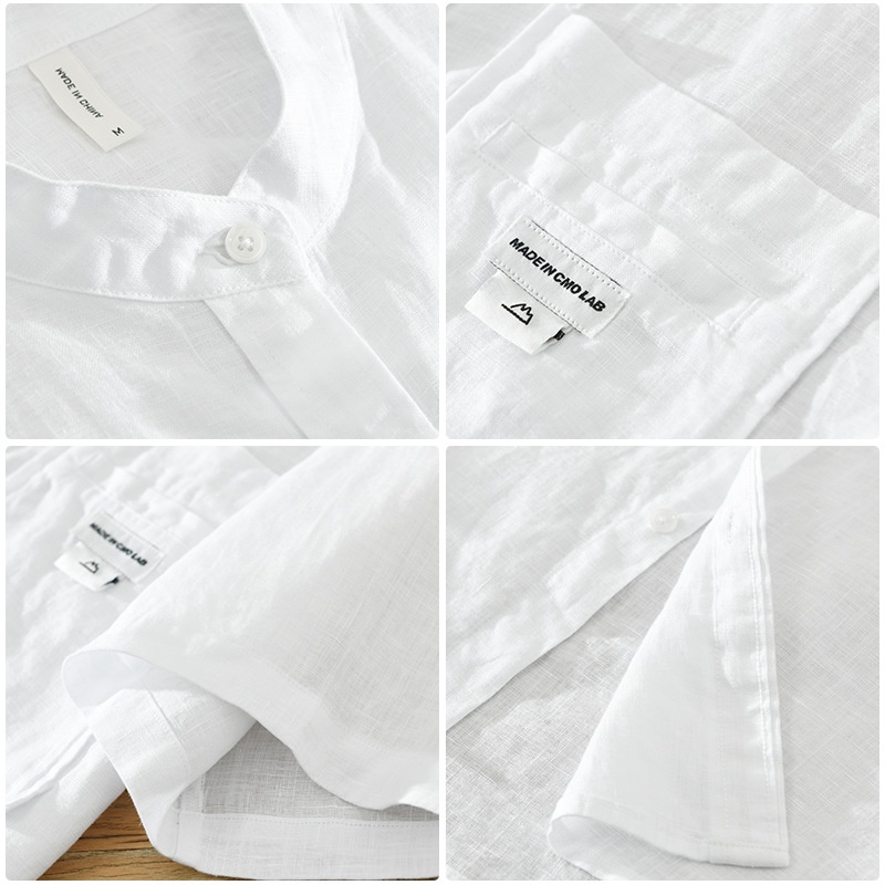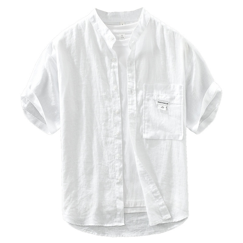 2770 Japanese Casual Stand Collar Linen Shirt Men's Literary Simple Thin Breathable Shirt Men's Clothing One Piece Dery