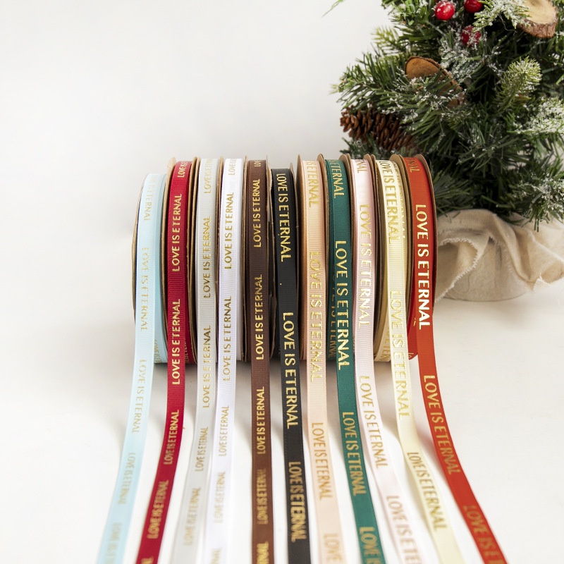 1 CMScrew Hot Stamping Ribbon English Letter Ribbon Flower Packaging Ribbon Gift Souvenir Tie
