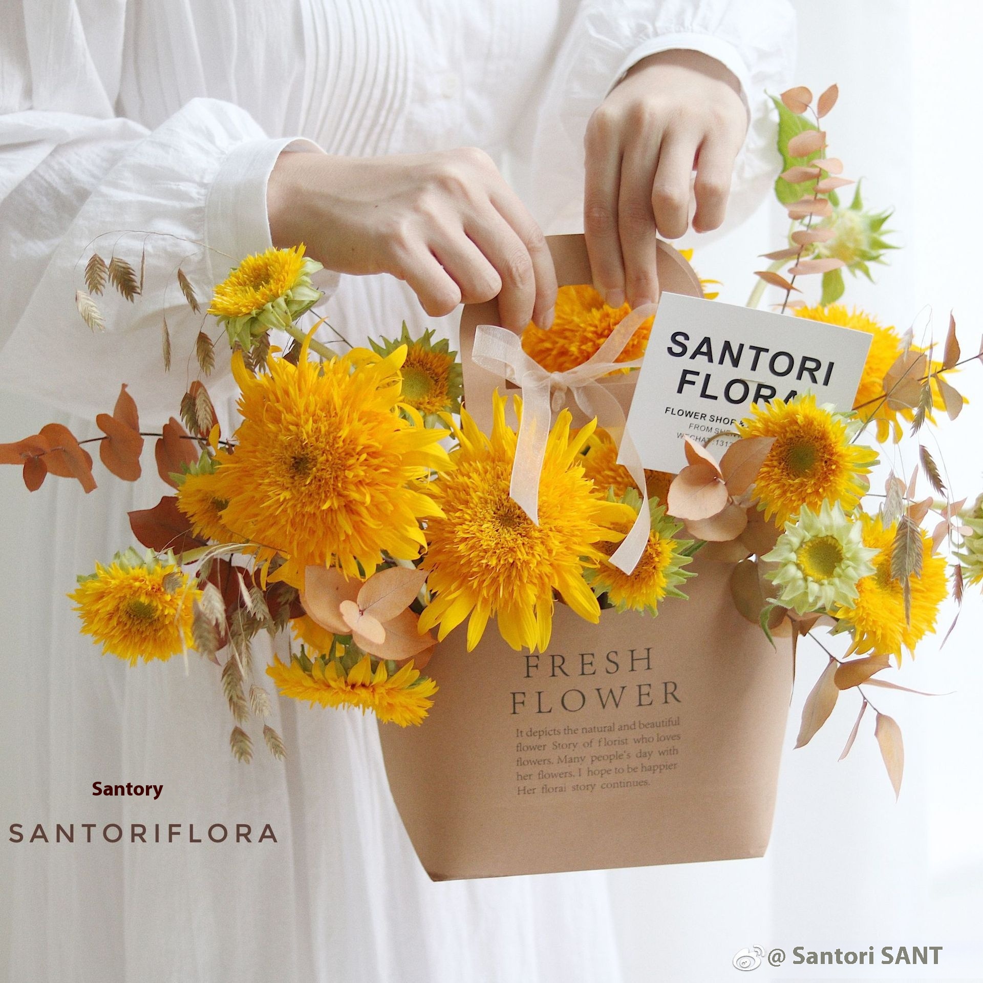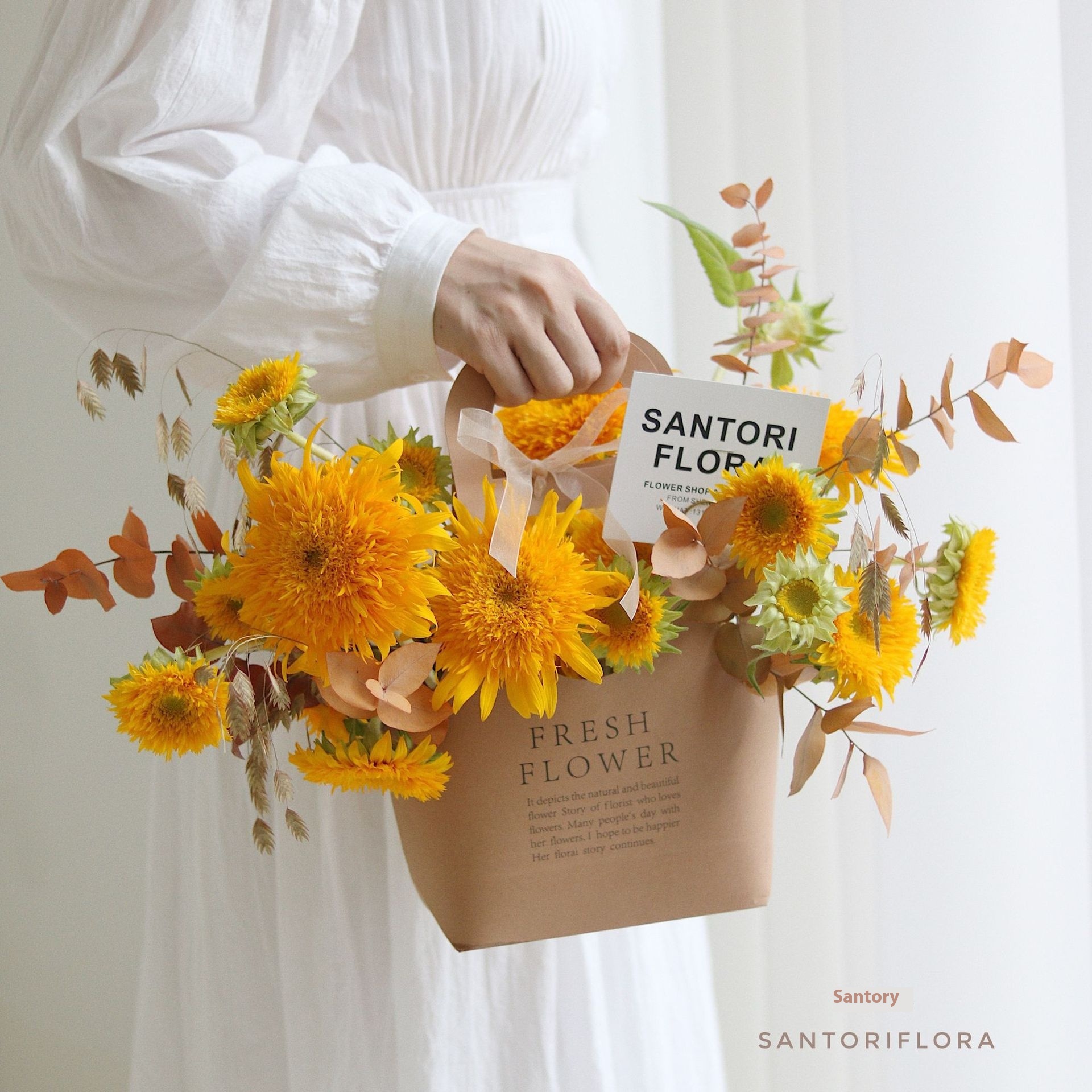 Holiday Letter Flower Handbag Kraft Paper Handbag English Handbag Flower Shop Floral Gift Bag