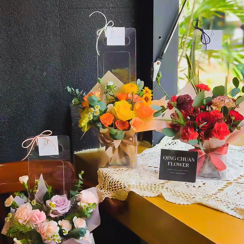 Mother's Day Transparent Portable Flower Box Single Bouquet Handbag Fully Transparent Portable Flower Box Flower Bag Flower Shop