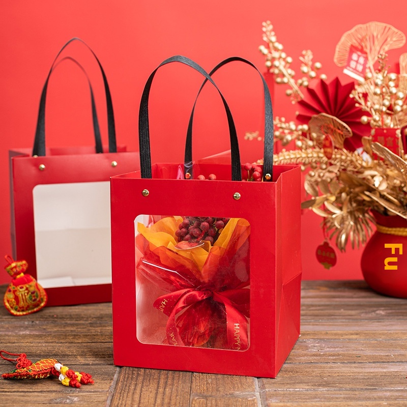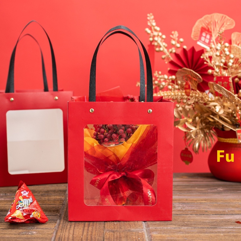 Holiday Gift Bag Red Handbag Window Bag Gift Bag Cake Baking Festive Wedding Candy Bag Souvenir Bag