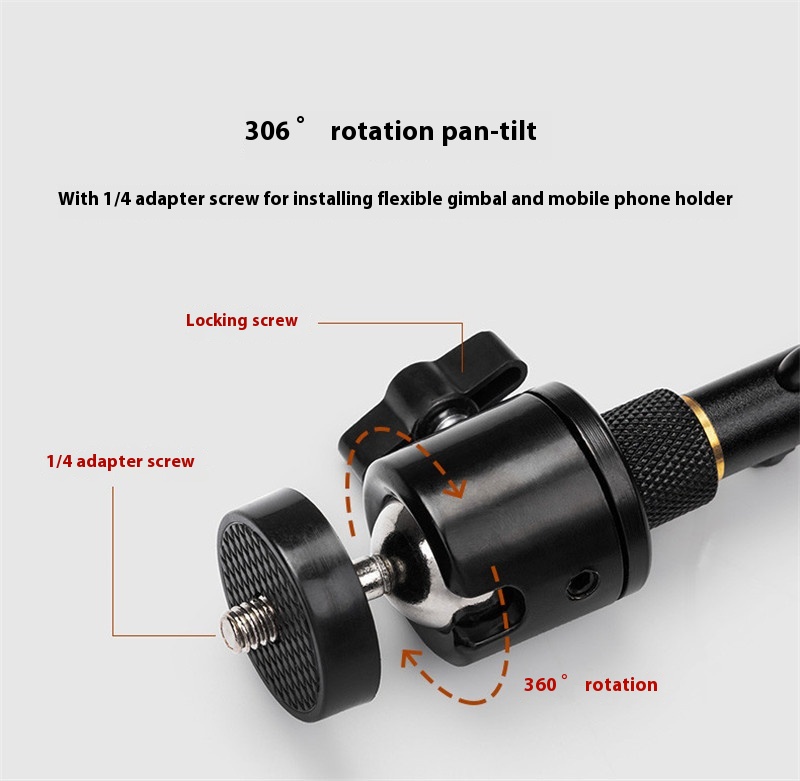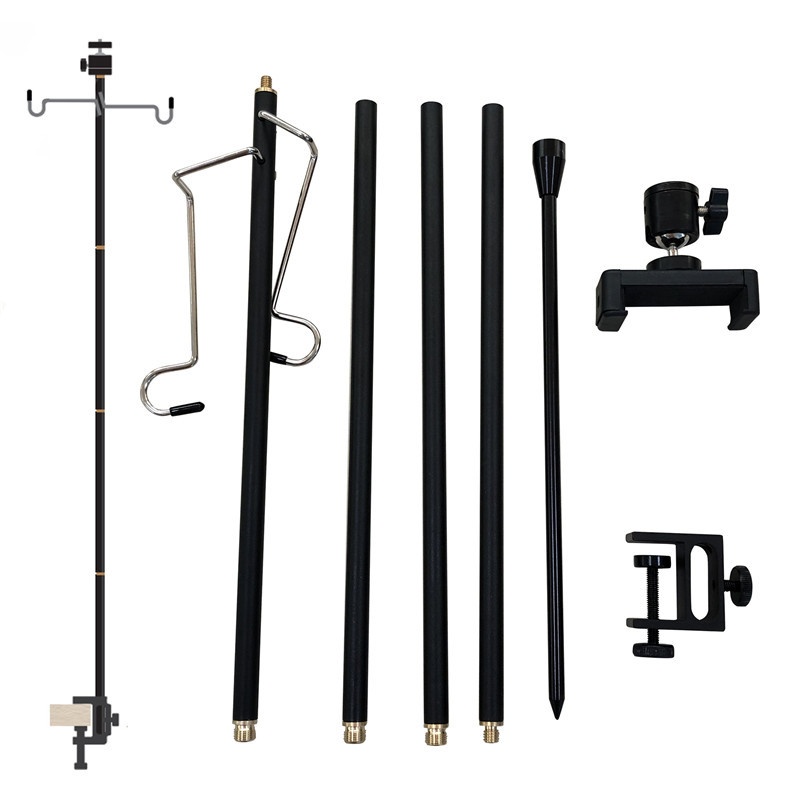 Outdoor Camping Light Stand Detachable Portable Camp Lighting Light Pole Bracket Black Version With Gimbal Mobile Phone Clip
