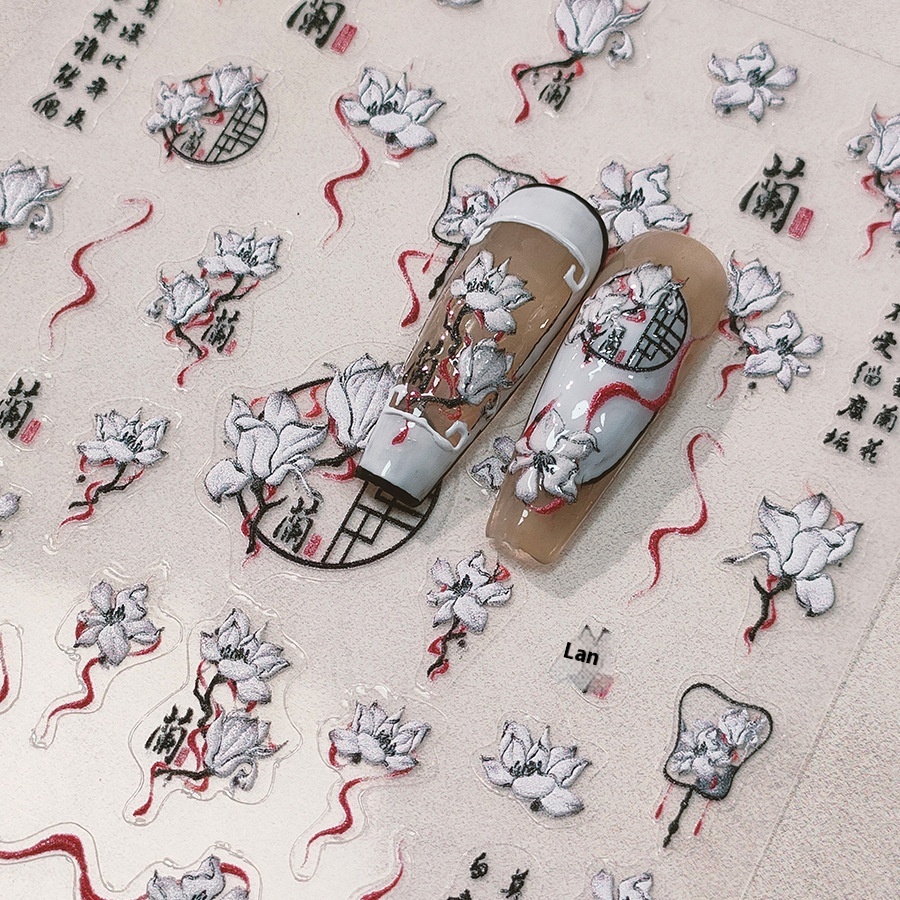 TENSORThin And Tough Process Nail Stickers Style Flower Nail Art Adhesive Stickers TS-3579 Magnolia Poetry