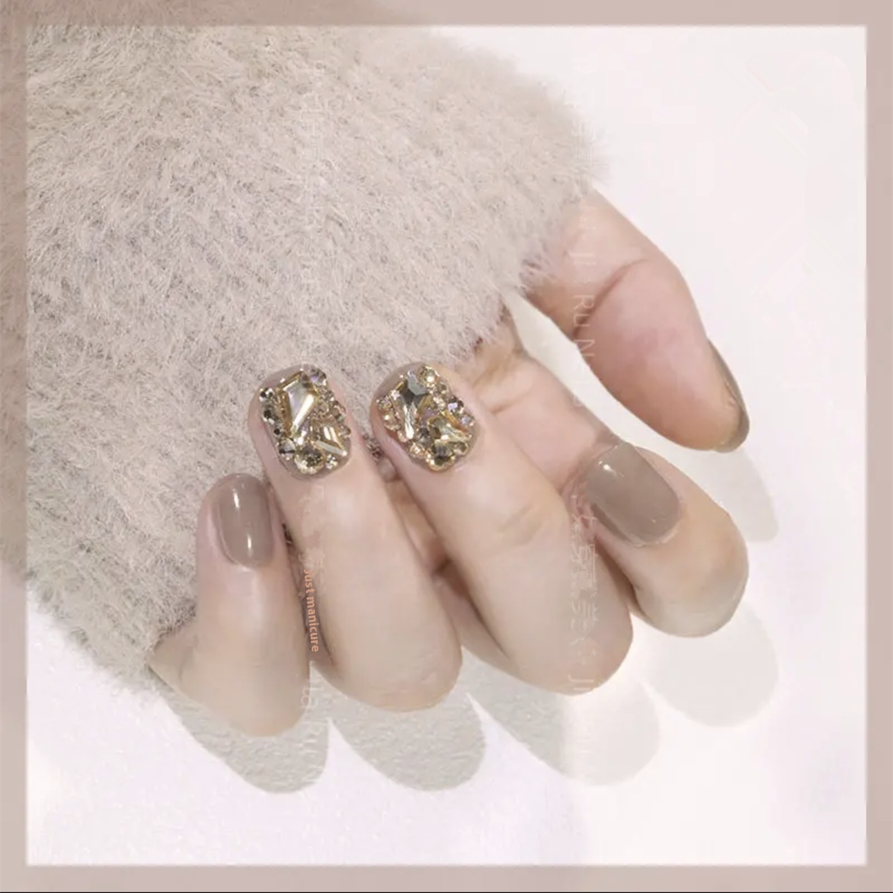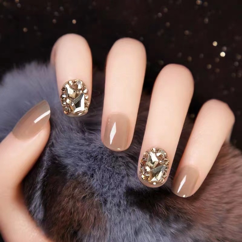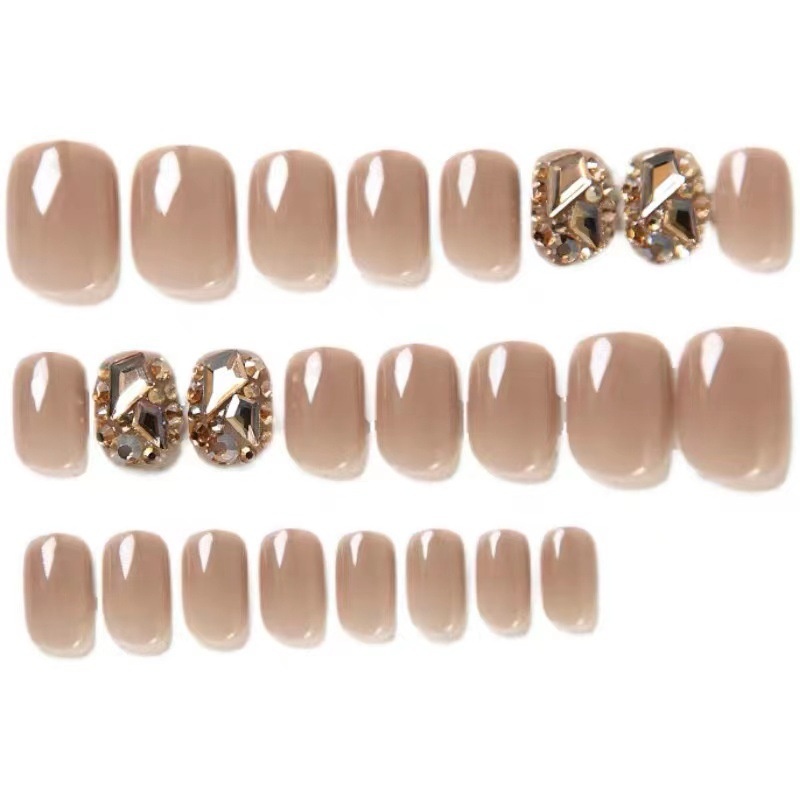 24 Pieces In ABox,Milk Tea,Champagne Gold,Full Diamond Wearable Nail Pieces,Finished Nail Art Pieces,Whitening Hands,Fake Nail Pieces