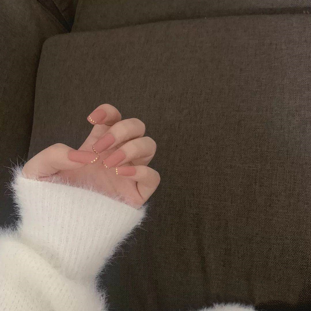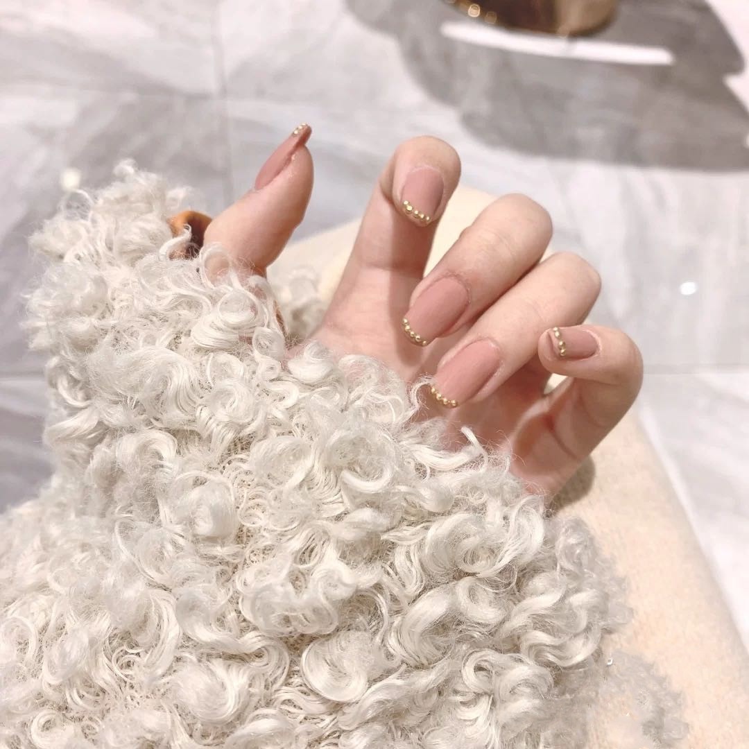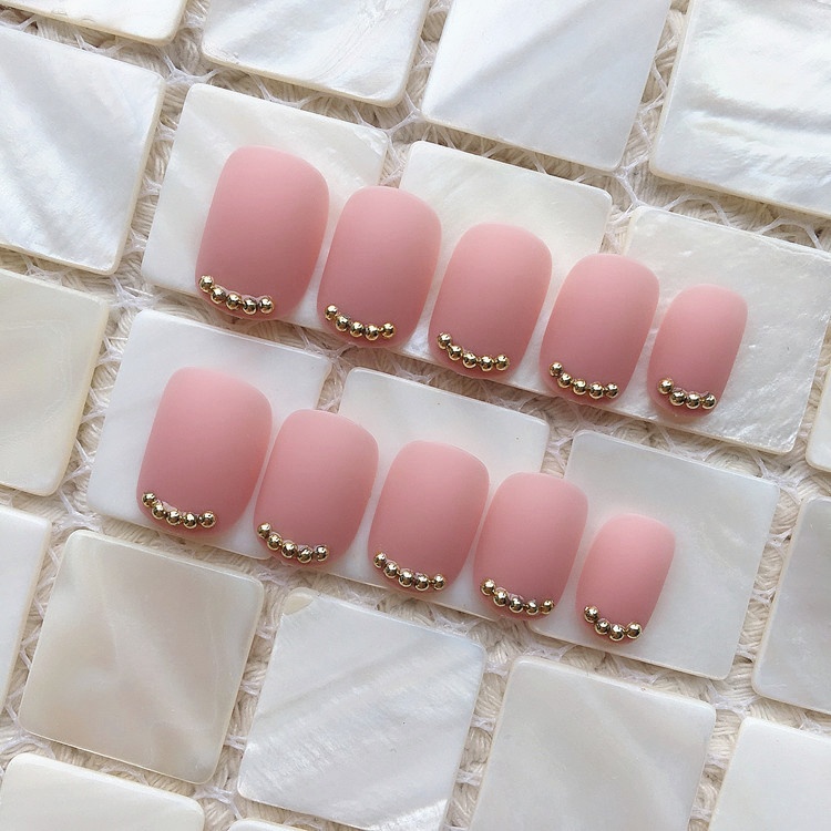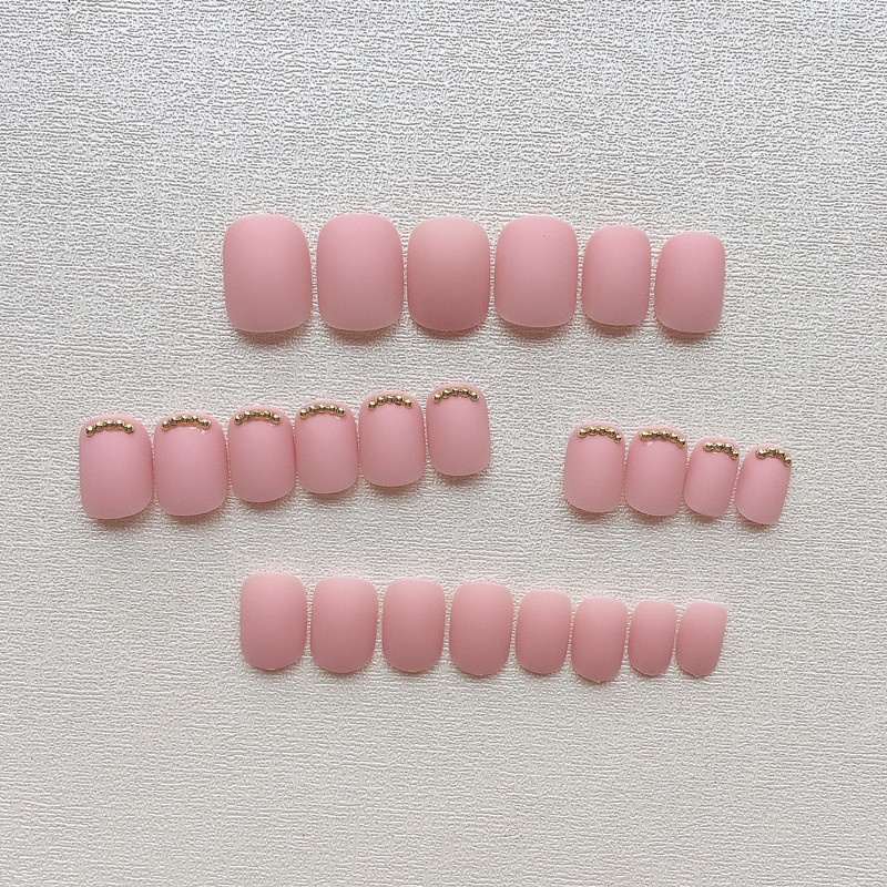Youduo Nail Art Finished Product False Nails Short Frosted Gold Beads Wearable Detachable Nail Art Girl Nail Stickers