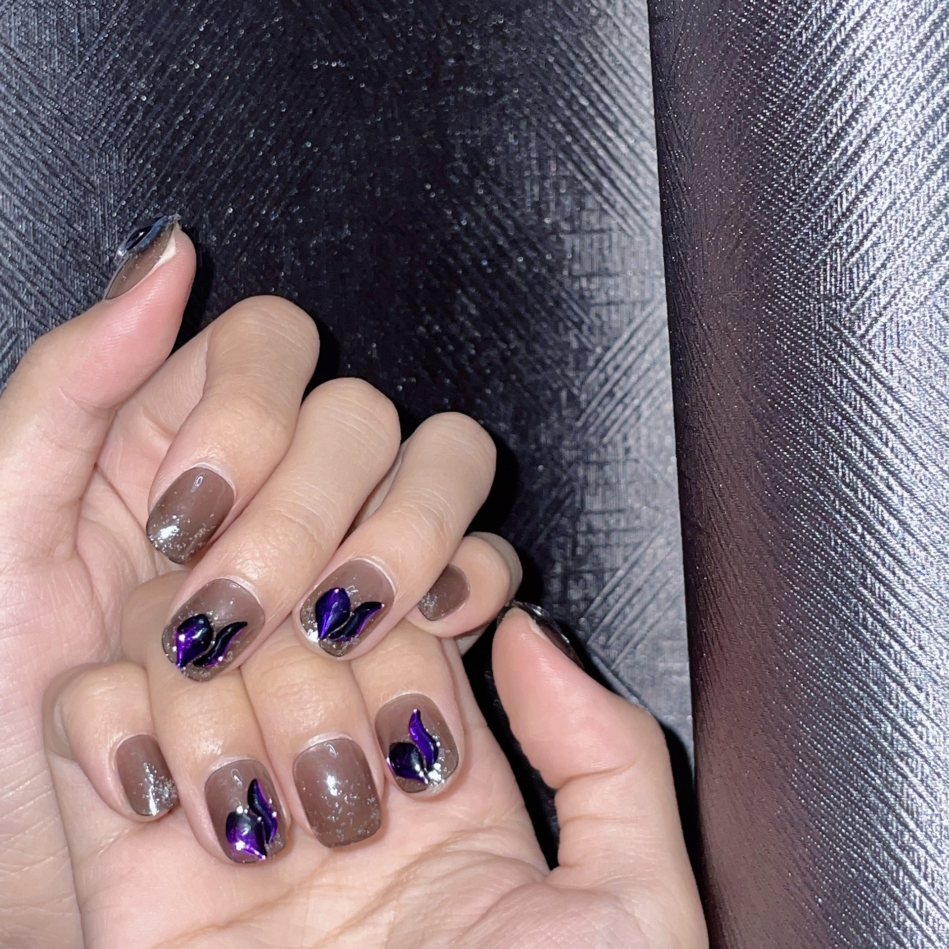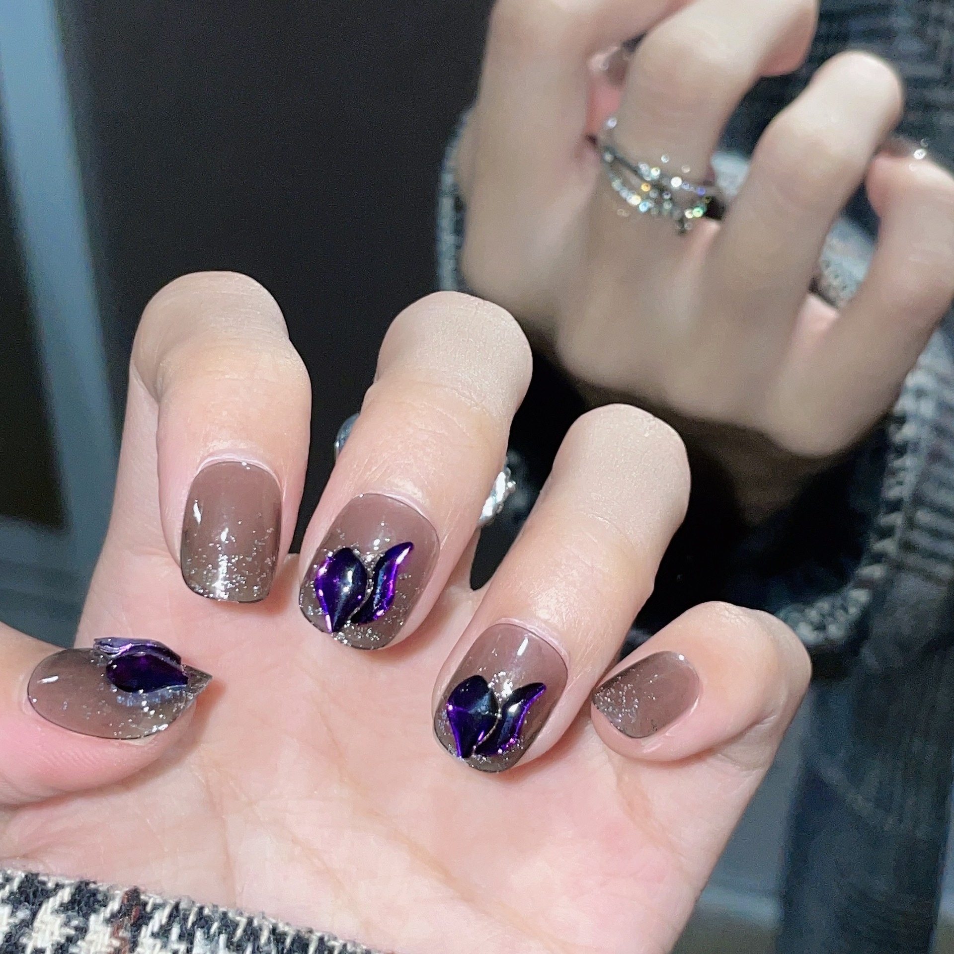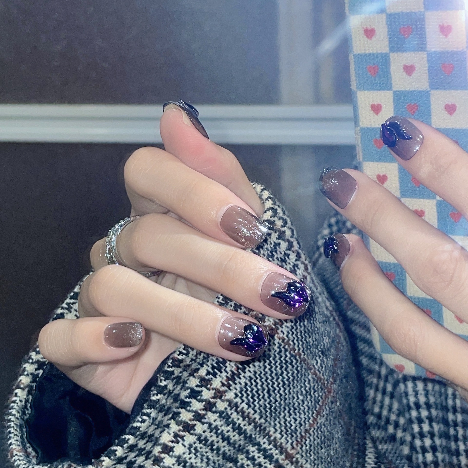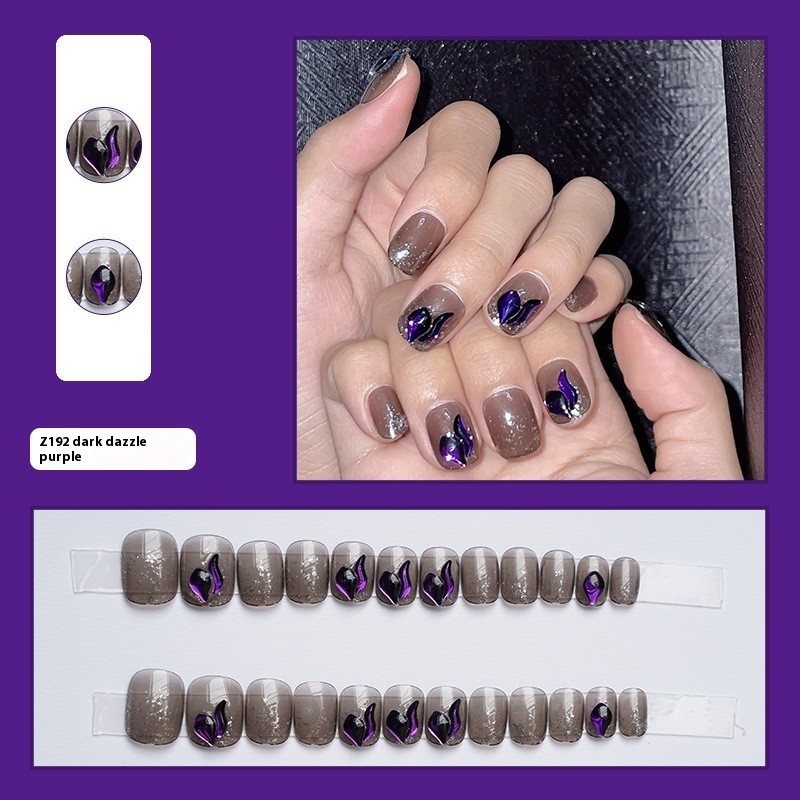 Dark Atmosphere Nail Art Finished Product Short Style Dazzling Purple Diamond Nail Stickers False Nails Press On Nails
