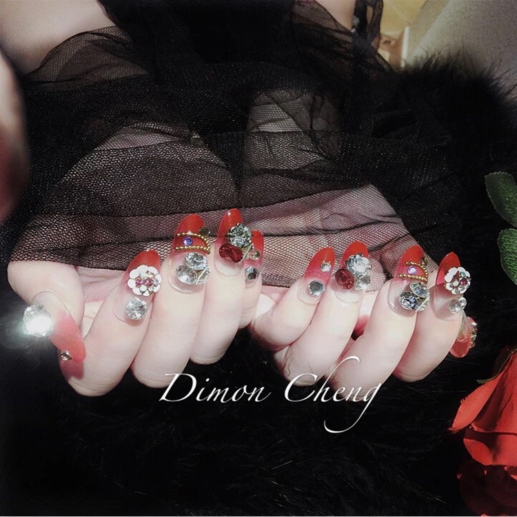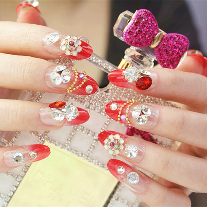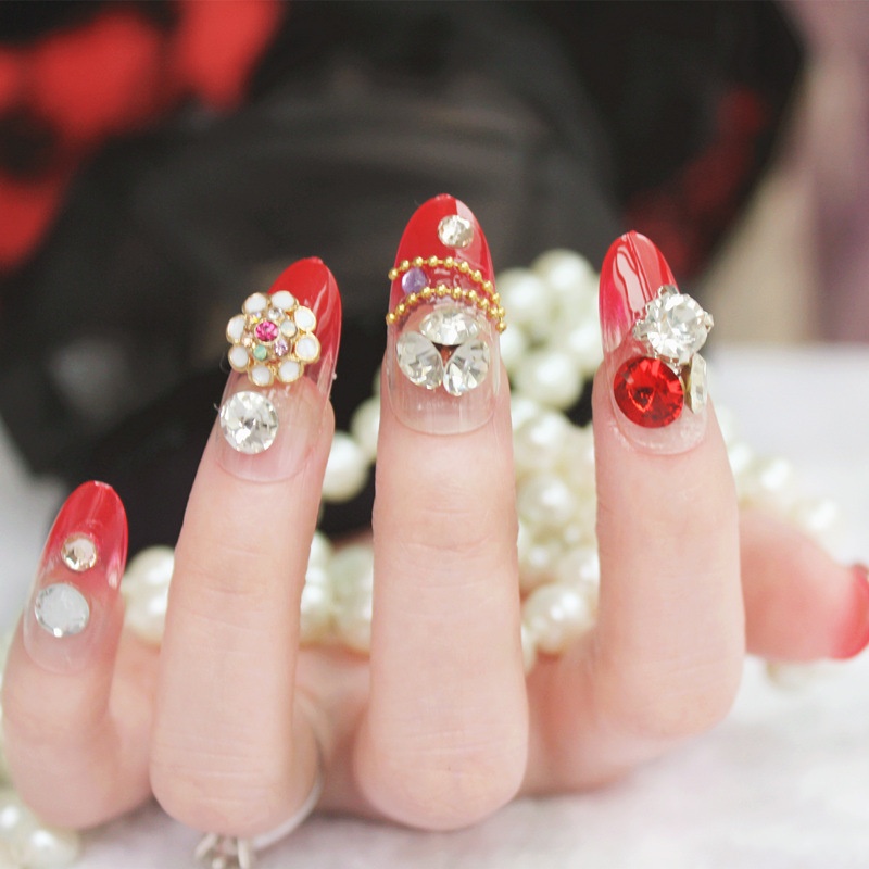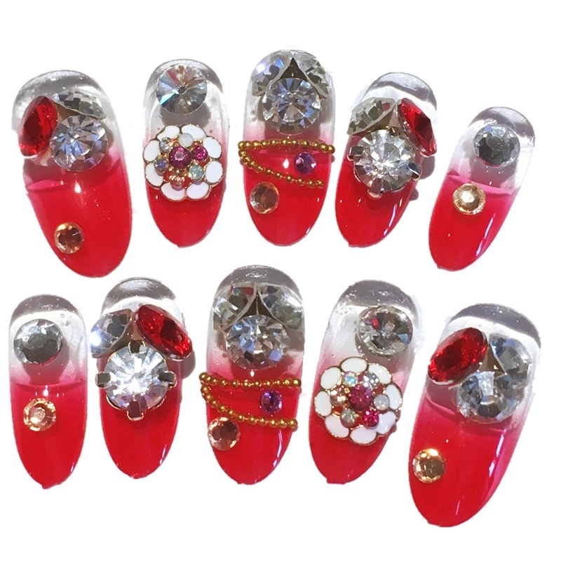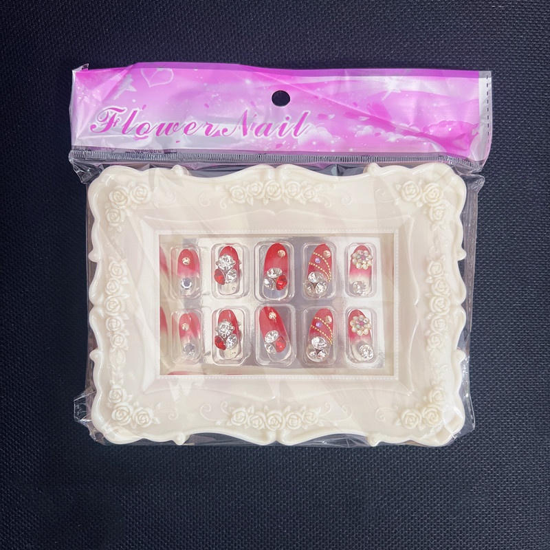 Studio Bridal Manicure Finished Product False Nails Temperament Red Long Nail Stickers Wear And Remove Press On Nails