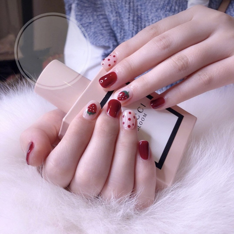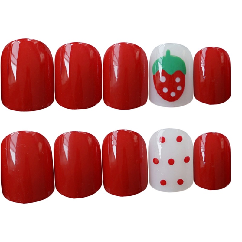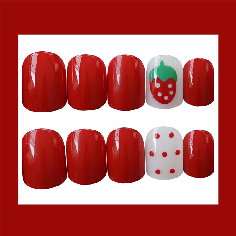 Spring And Summer Nail Art Finished Product Fake Nails Cute Red Strawberry Wearable Detachable Nail Art Nails