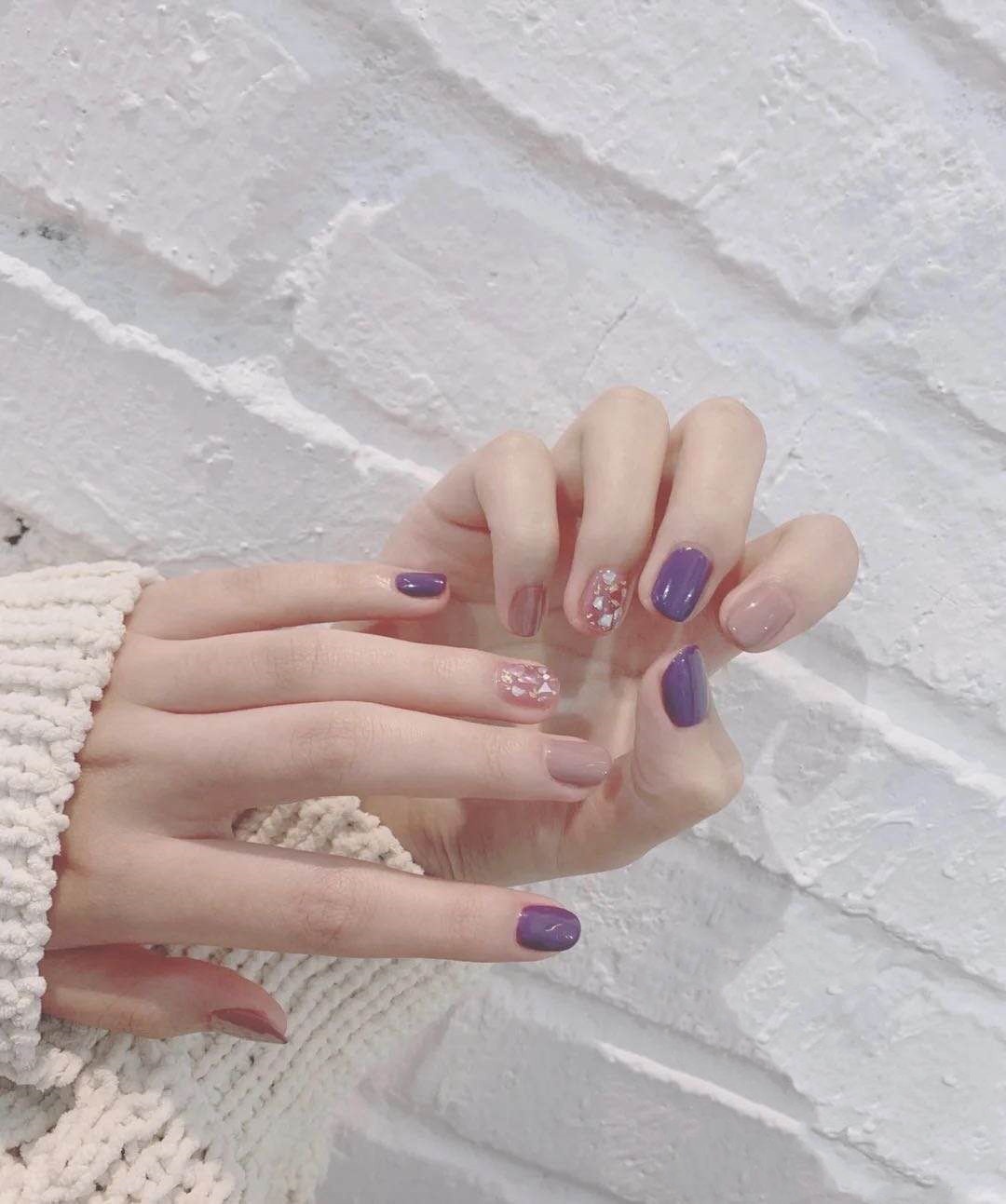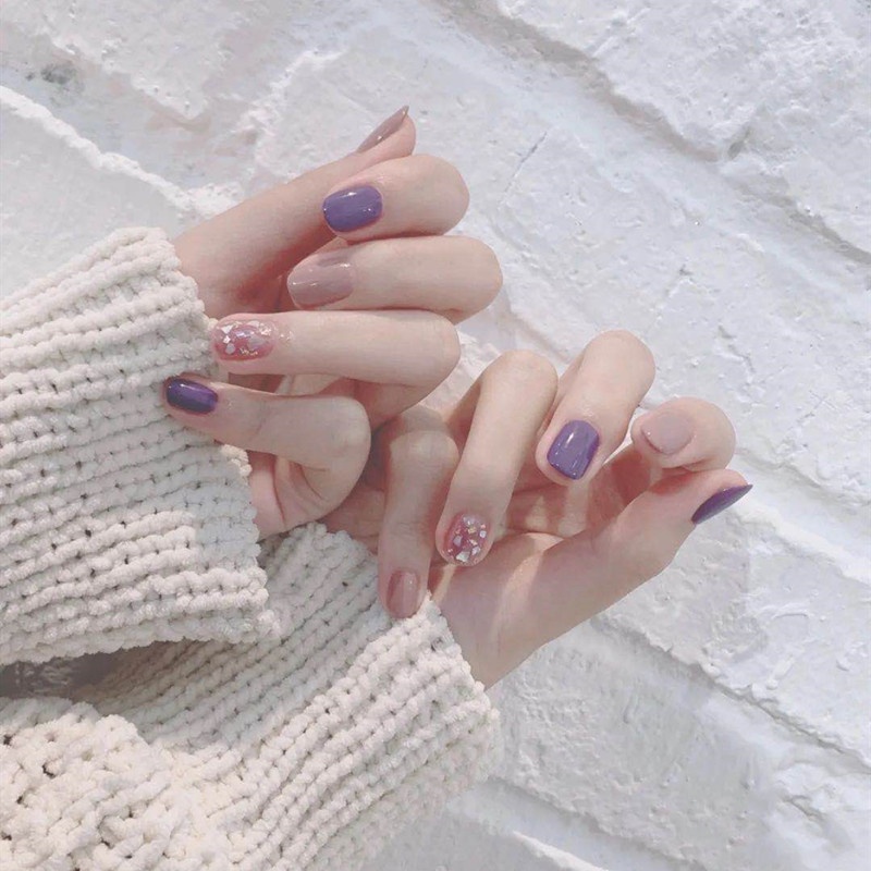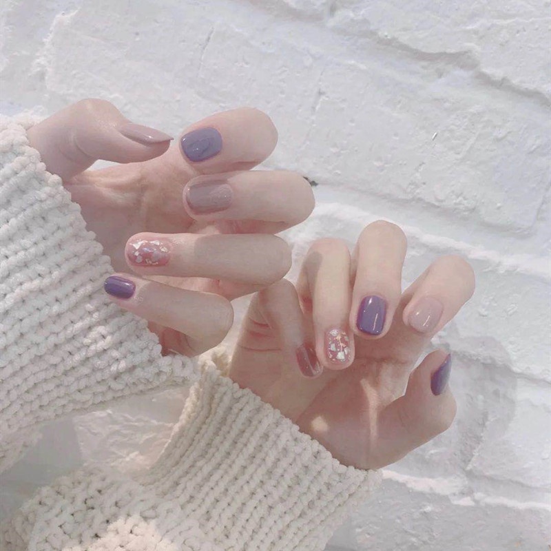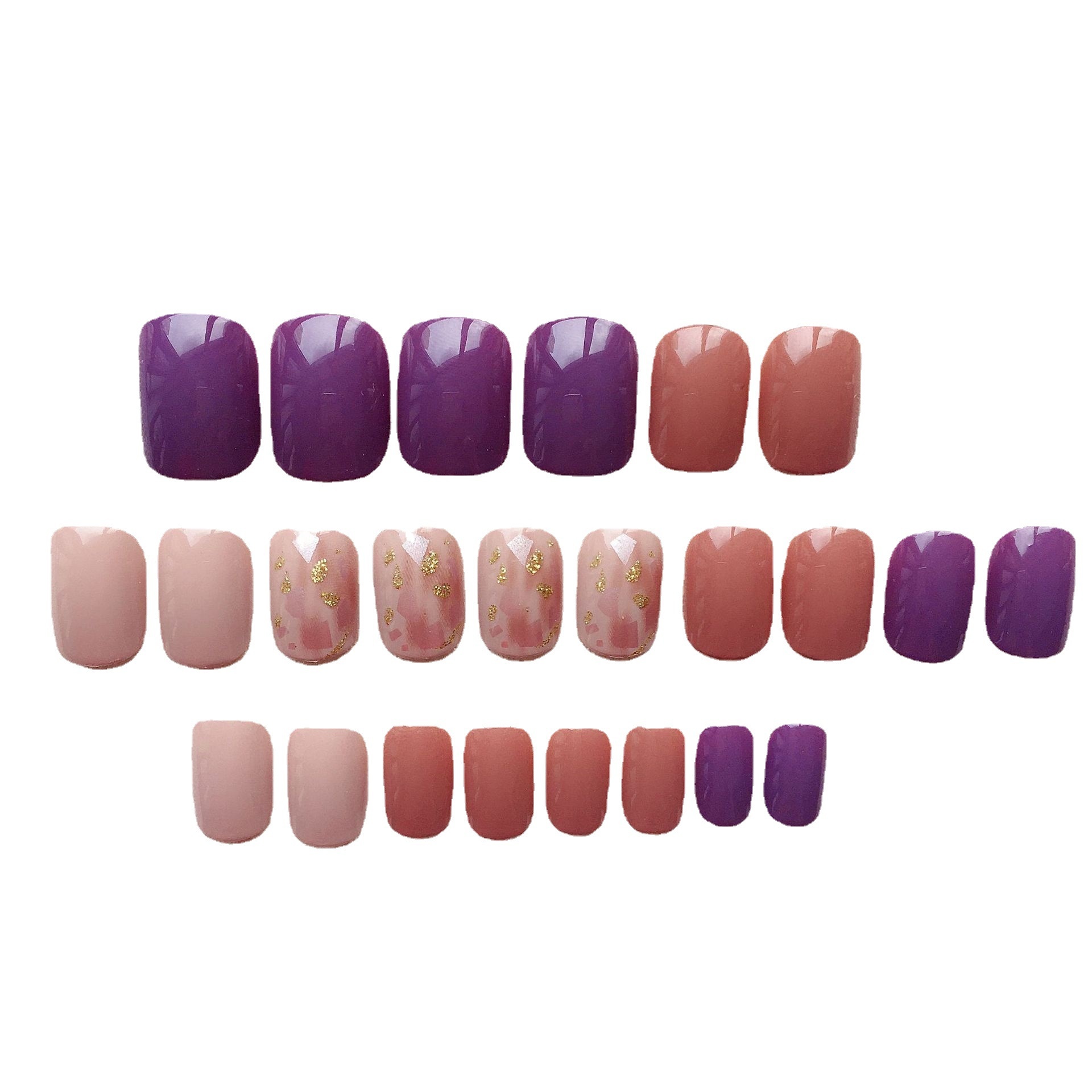 Youduo Nail Art Finished Product False Nails Purple Gold Foil Shell Wearable Detachable Nail Art Girl Nail Stickers