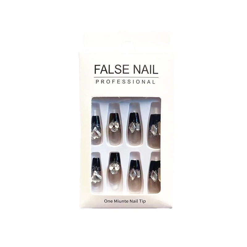 Xiaohongshu Flashing Rhinestones Dark Night Star River High-end Black French False Nails Detachable Nail Pieces Wearable Nail Art