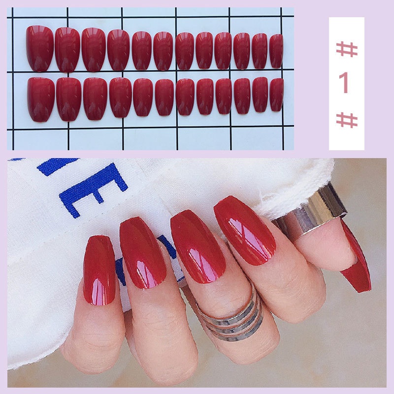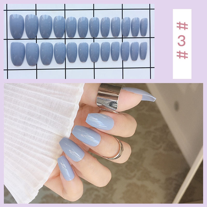 24 Pieces Of Pure Color False Nail Stickers In ABox,Ballet Nails,Simple Nail Pieces,Press On Nails
