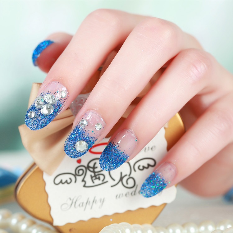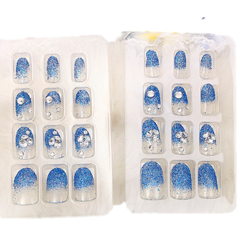Blue Star Powder Studio Bridal Manicure Finished Product False Nails Nail Art Patches Wearable Detachable Nails Nail Art Tools