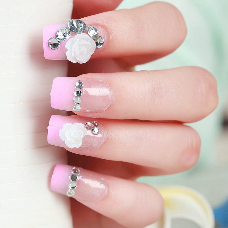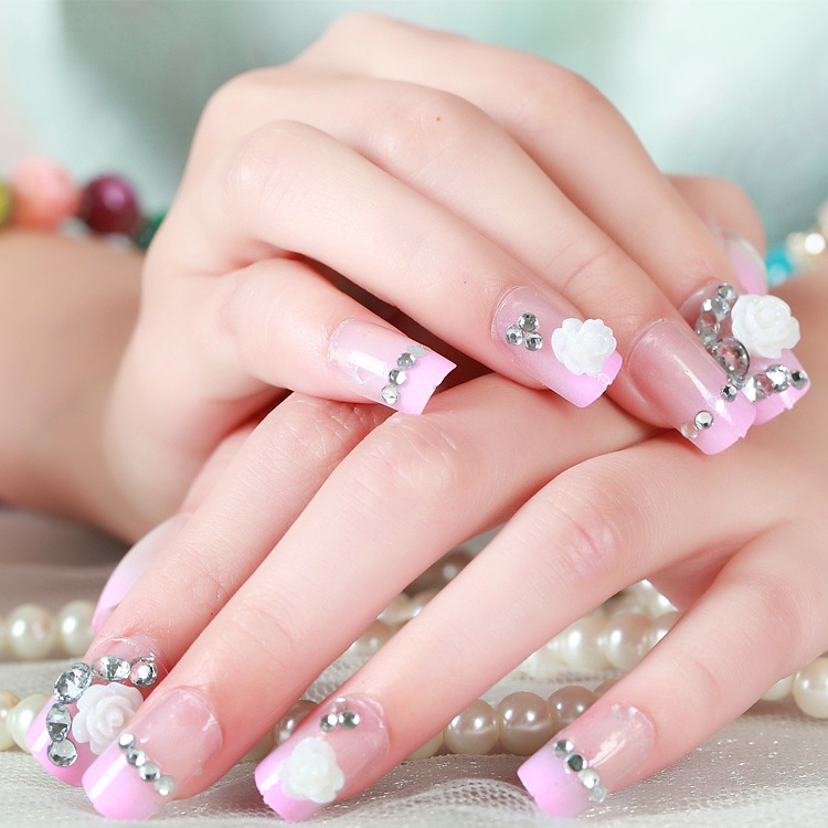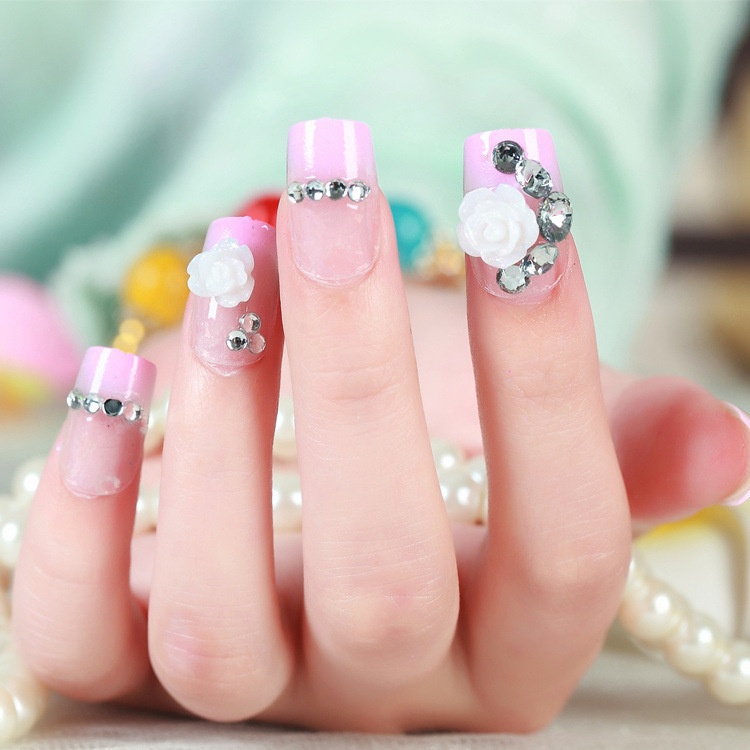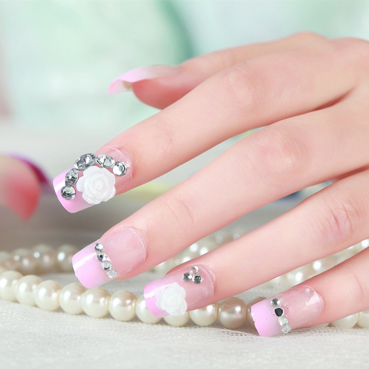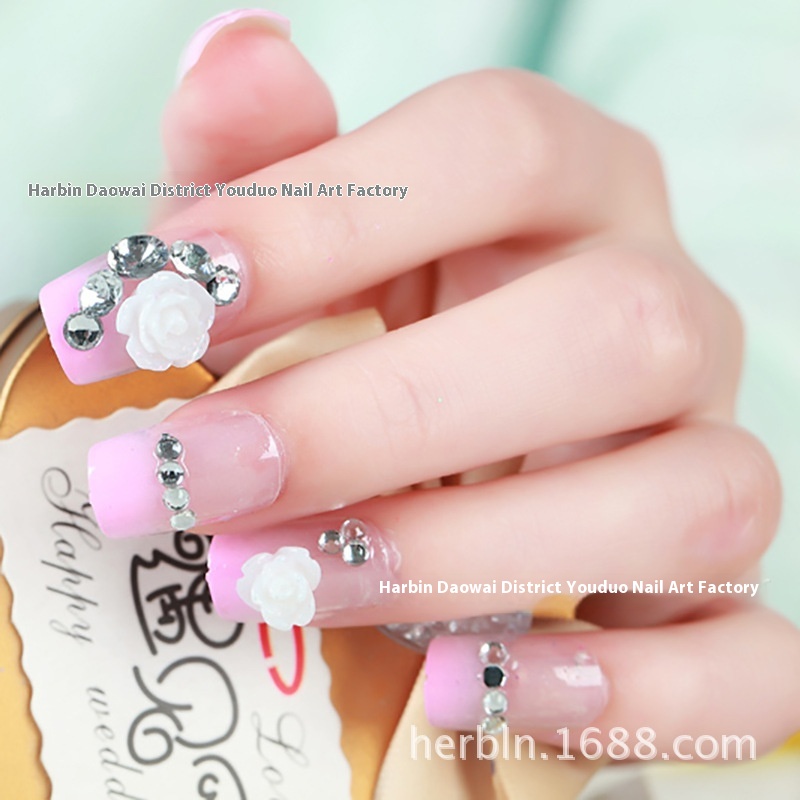Studio Bride Pink Flower Nail Art False Nail Patches Wearable Detachable Nail Art Finished Nail Art Tools