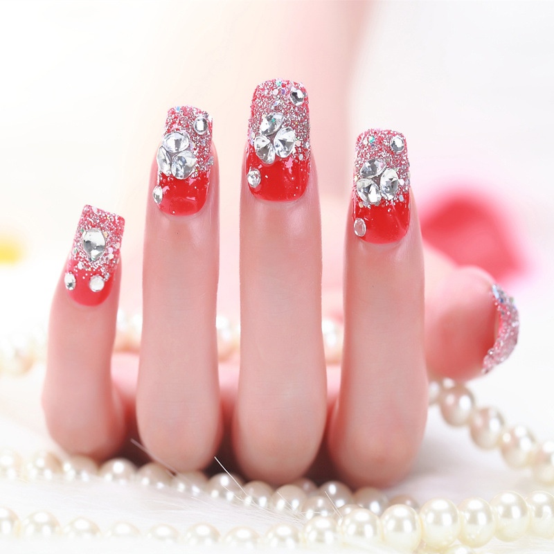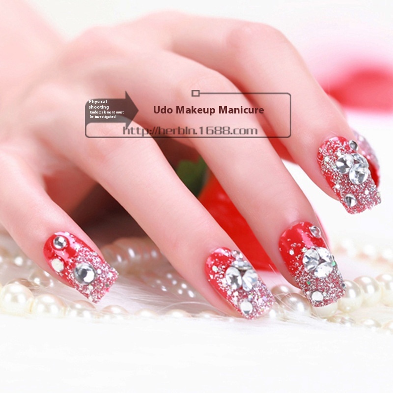 Red Finished False Nails Studio Bride Nail Stickers Manicure Finished Wearable Detachable Nail Pieces