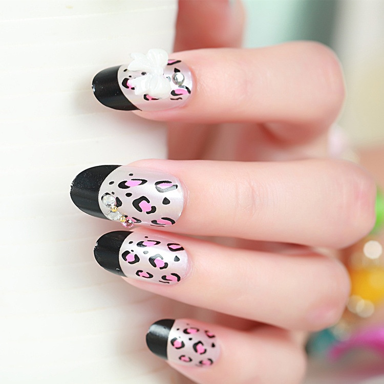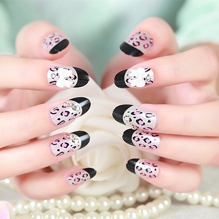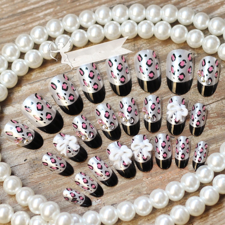 Leopard Print Bowknot False Nails Wearable Detachable Nail Art Finished Nails Photo Studio Bridal Photo Nail Art Tools