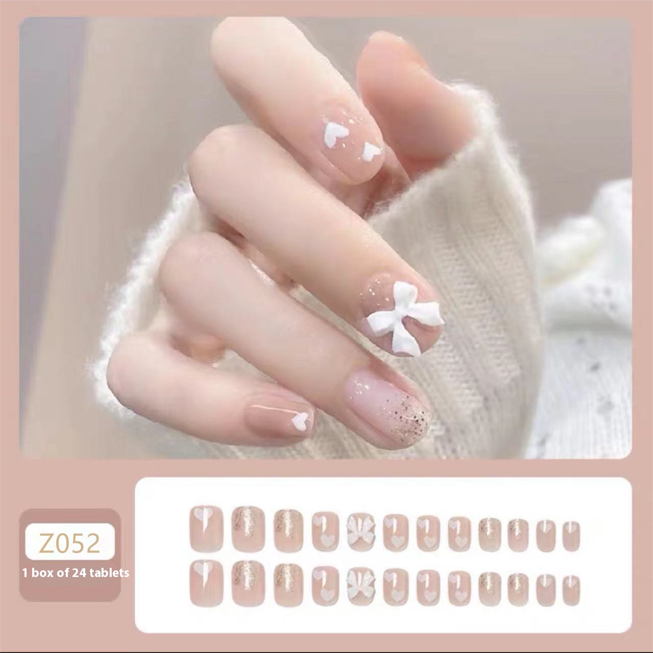 Nude Love Starlight Fairy Bow Nail Stickers Wearable Nails Fake Nails Finished Nail Stickers Nails
