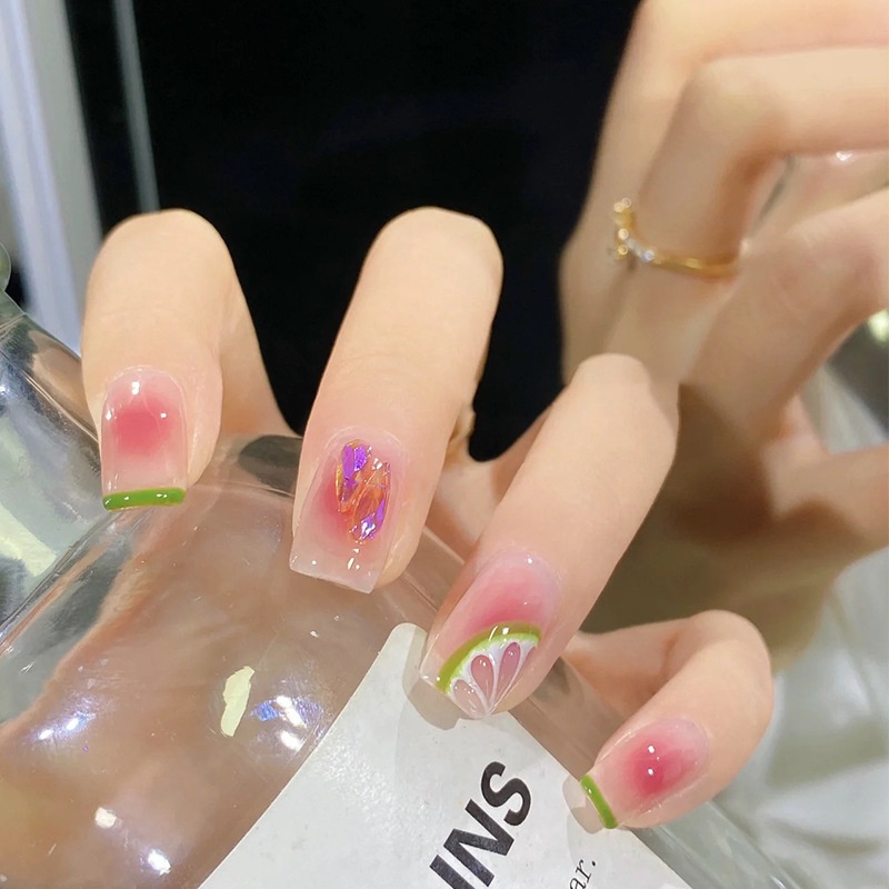 Summer Lemon Fresh Blush Wear Nail Art Summer Whitening False Nails Nail Art Finished Short Version Disassembly