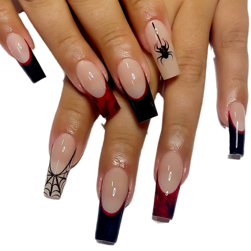 Halloween Ballet Black And Red Spider Web False Nails Nail Stickers Nail Art Finished Product Press On Nails