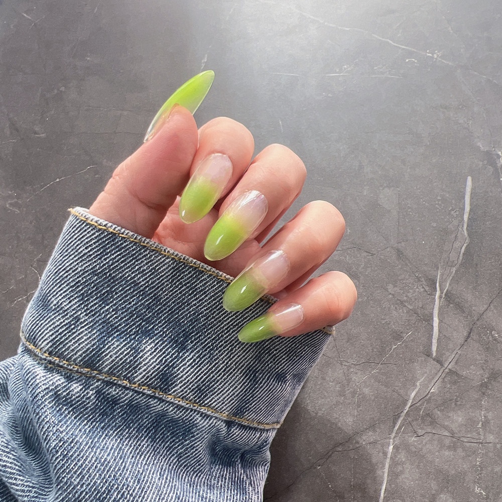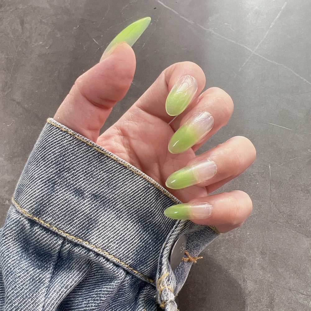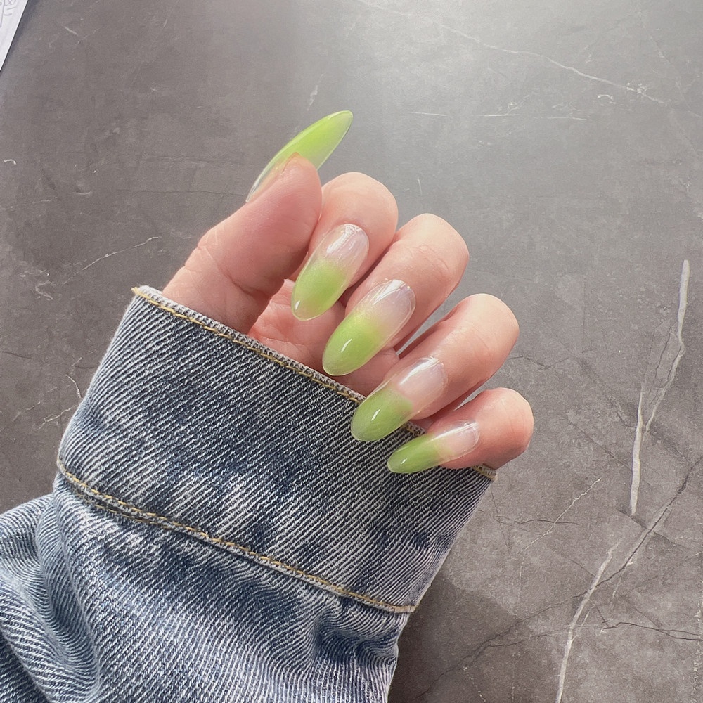 Spring And Summer Light Green French Gradient Wear Nails European And American Style Hot Girl Medium And Long Detachable False Nails Manicure Finished Product