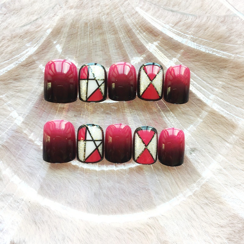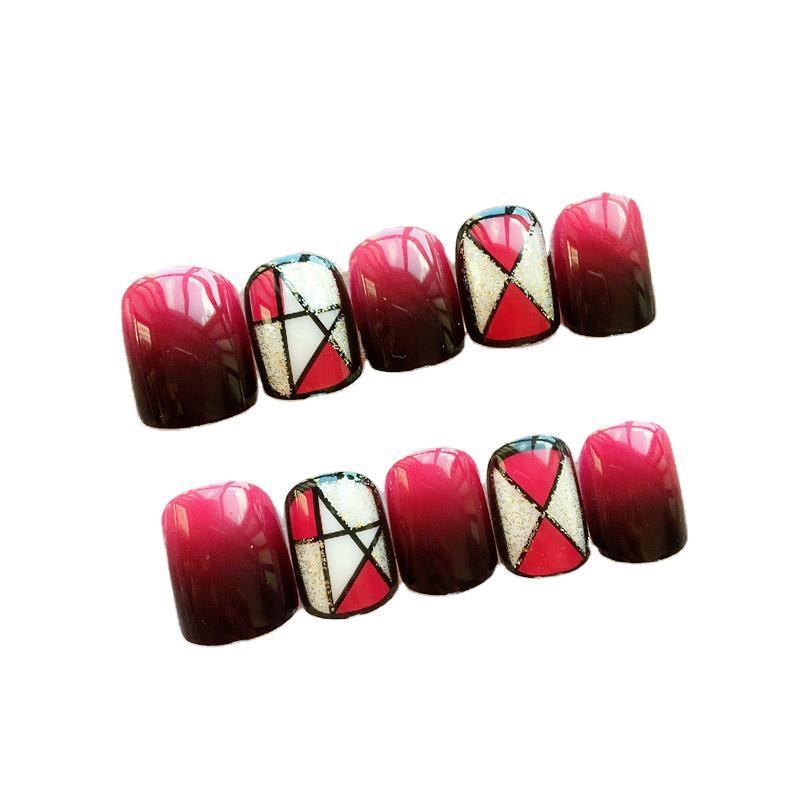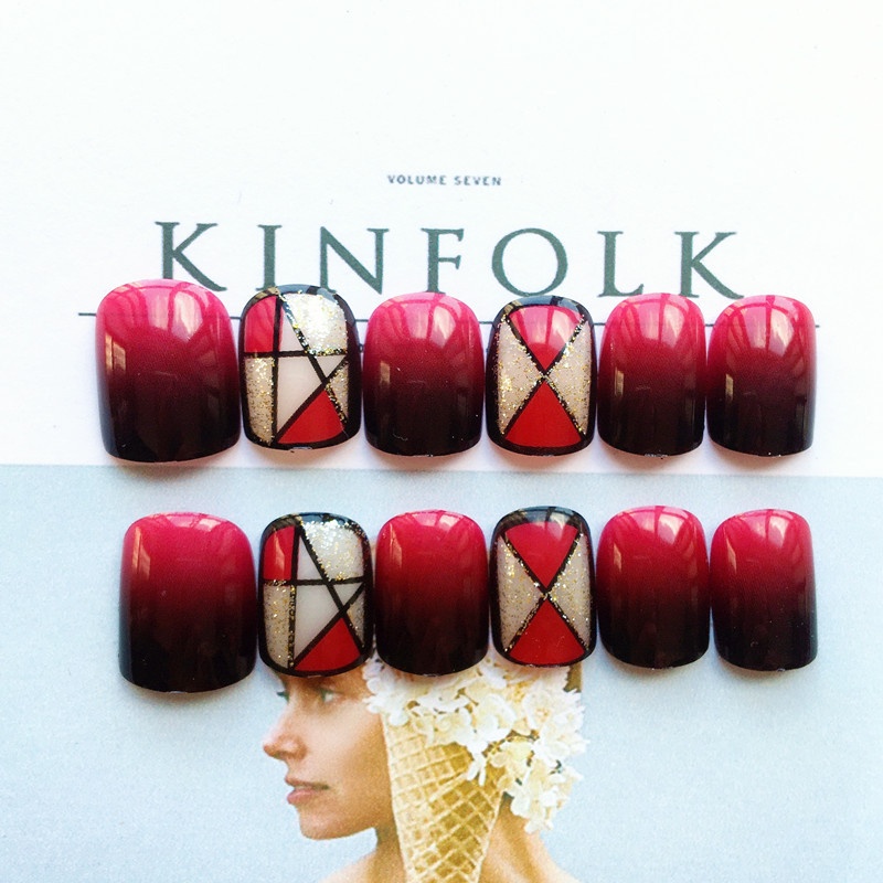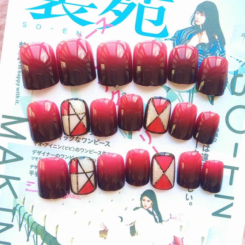 24 Pieces Of Short Square Gradient Black And Red Graphic False Nails Finished Product Press On Nails