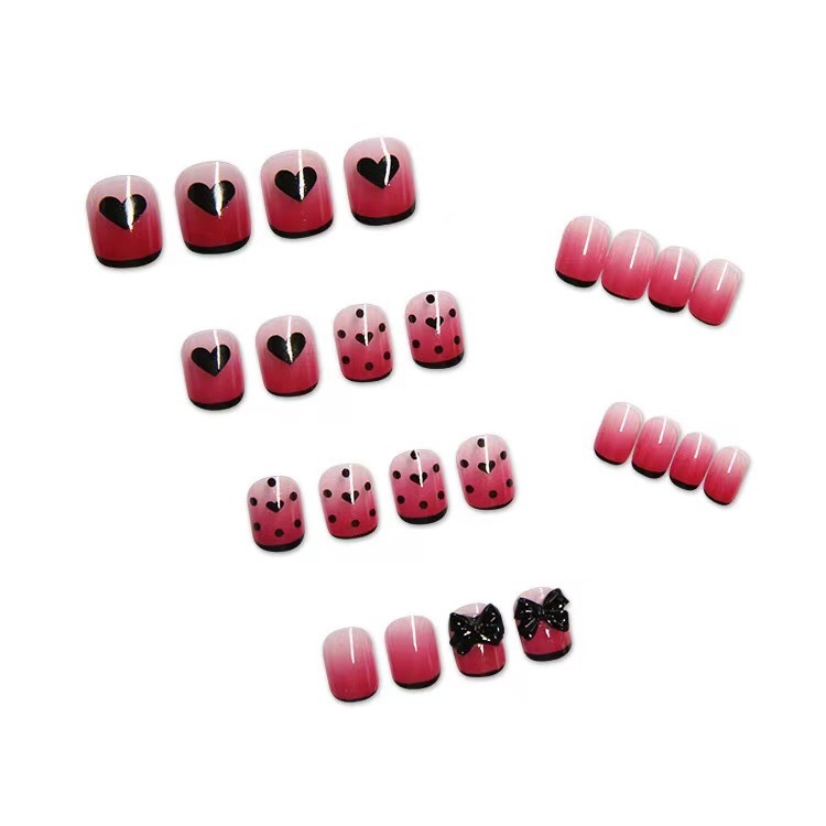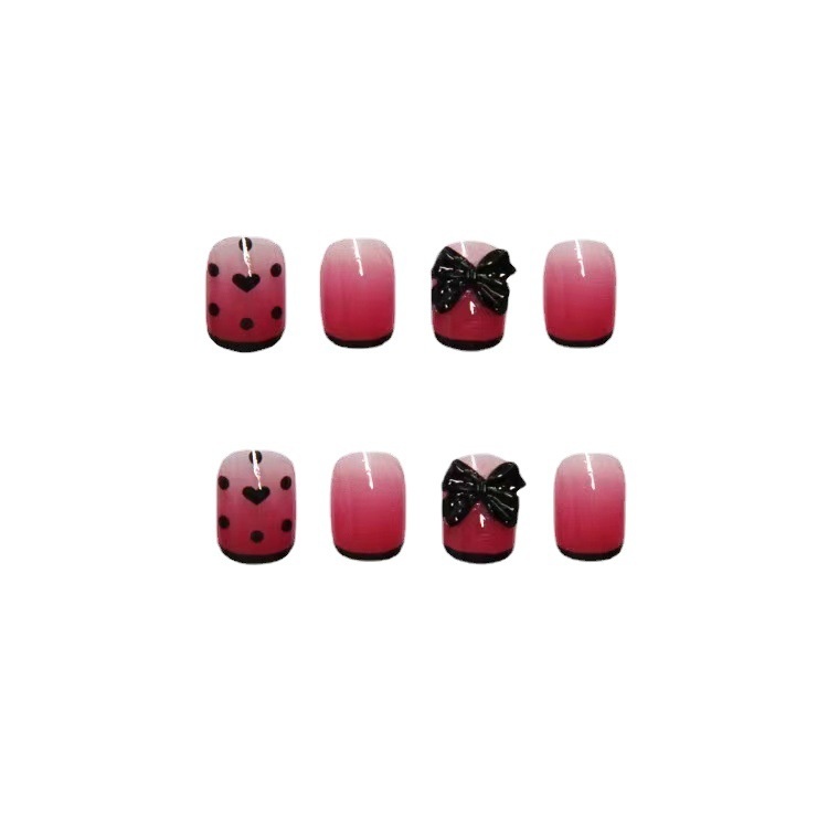 Short Student Wear Nail Art Patch Removable Short Black Edge French Bow False Nail Finished Product
